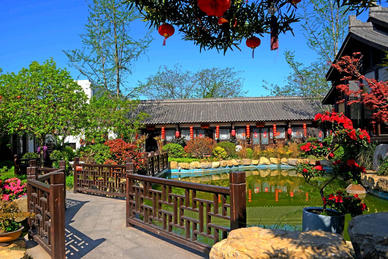 银杏飘金,鸳鲤嬉波,柿焰映廊。看亭台蜿转,茗烟袅袅;同侪倜傥,雅趣流芳。耆宿相偕,荣休共贺,笑语盈堂绕画梁。清欢里,忆峥嵘岁月,意气轩昂。