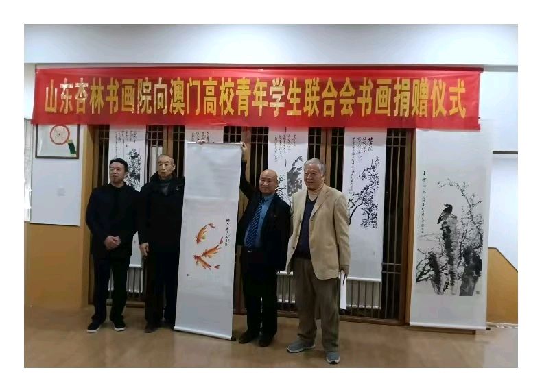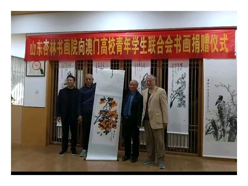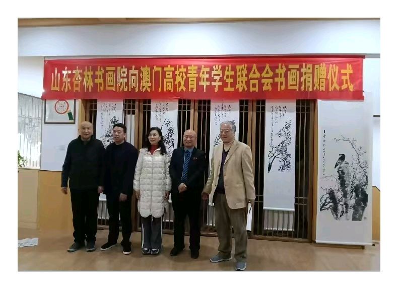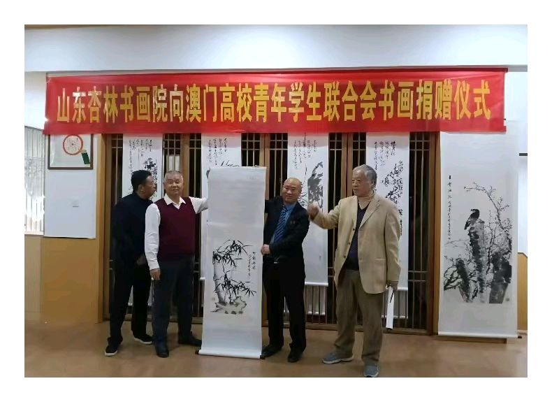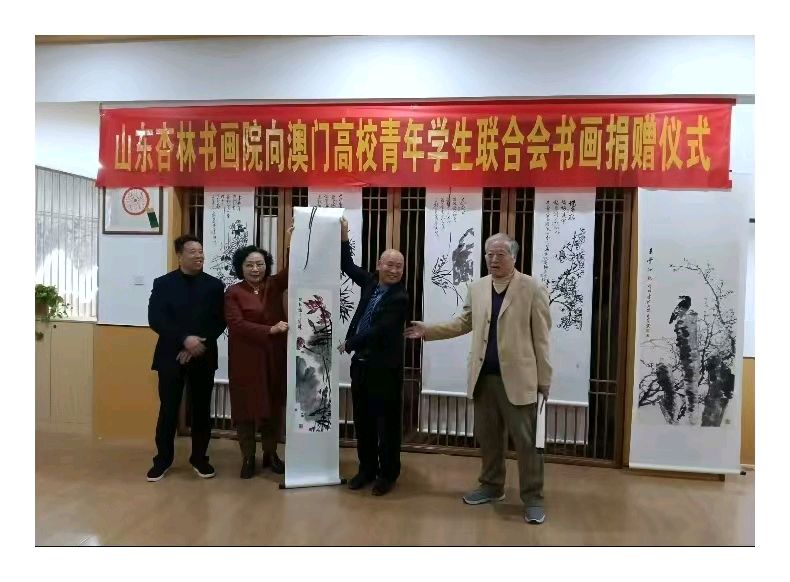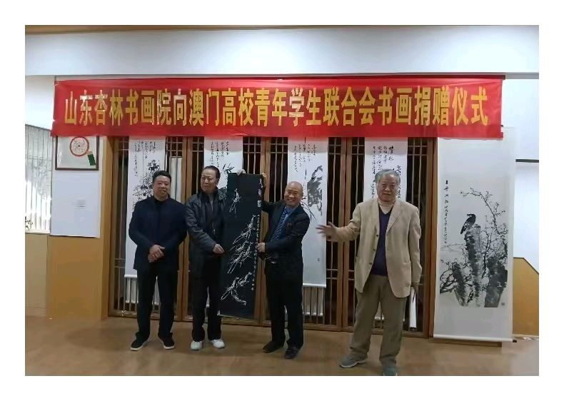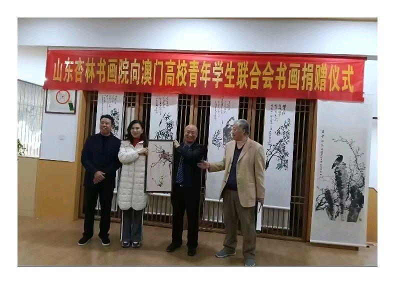 \ 山东杏林书画院向中国(澳门)高校青年学生联合会捐赠知名书法家珍藏书画