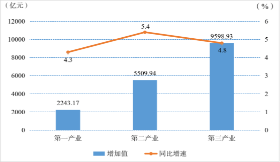 图贵州省2025年前三季度三次产业增加值及其增长速度