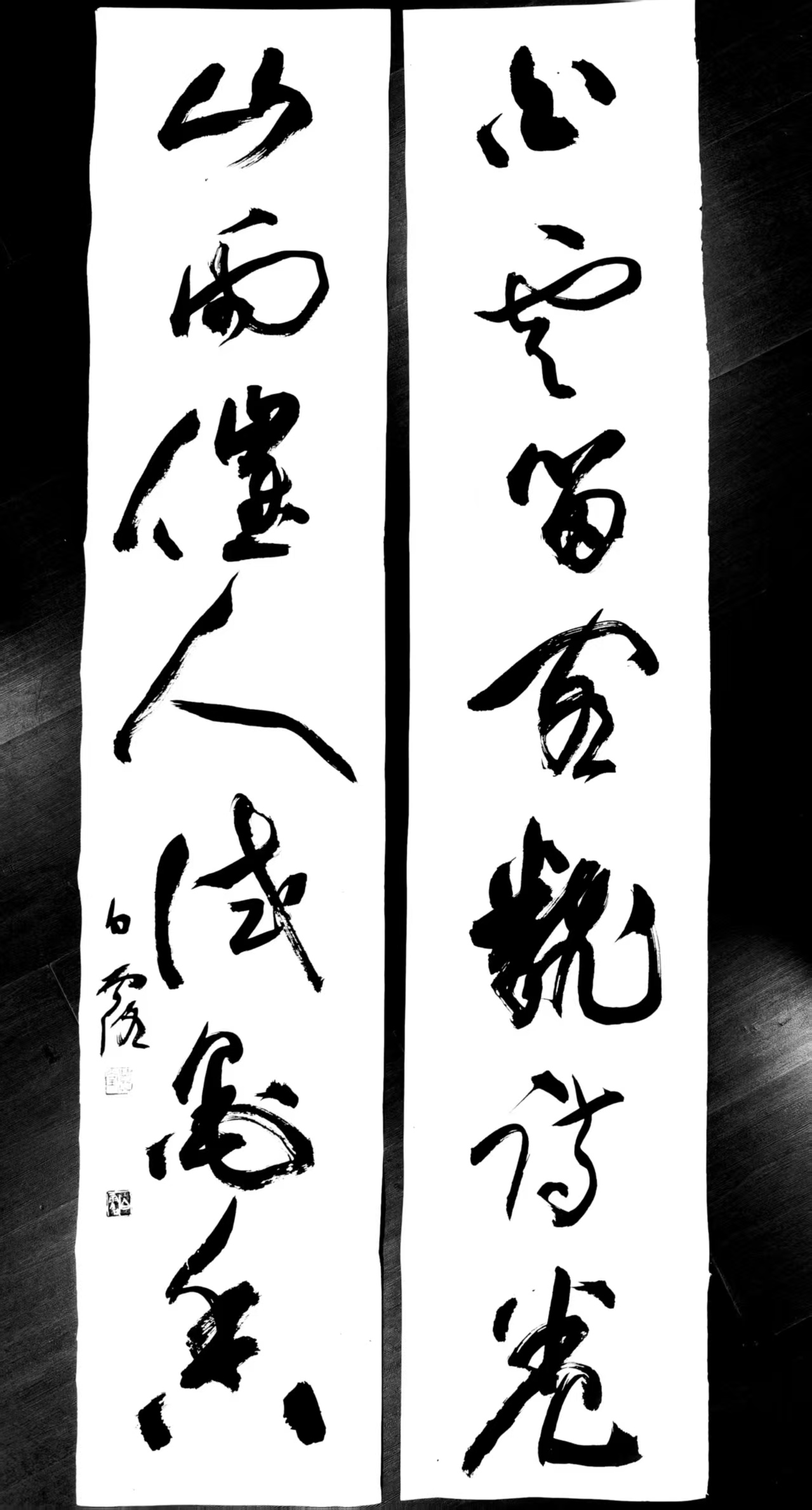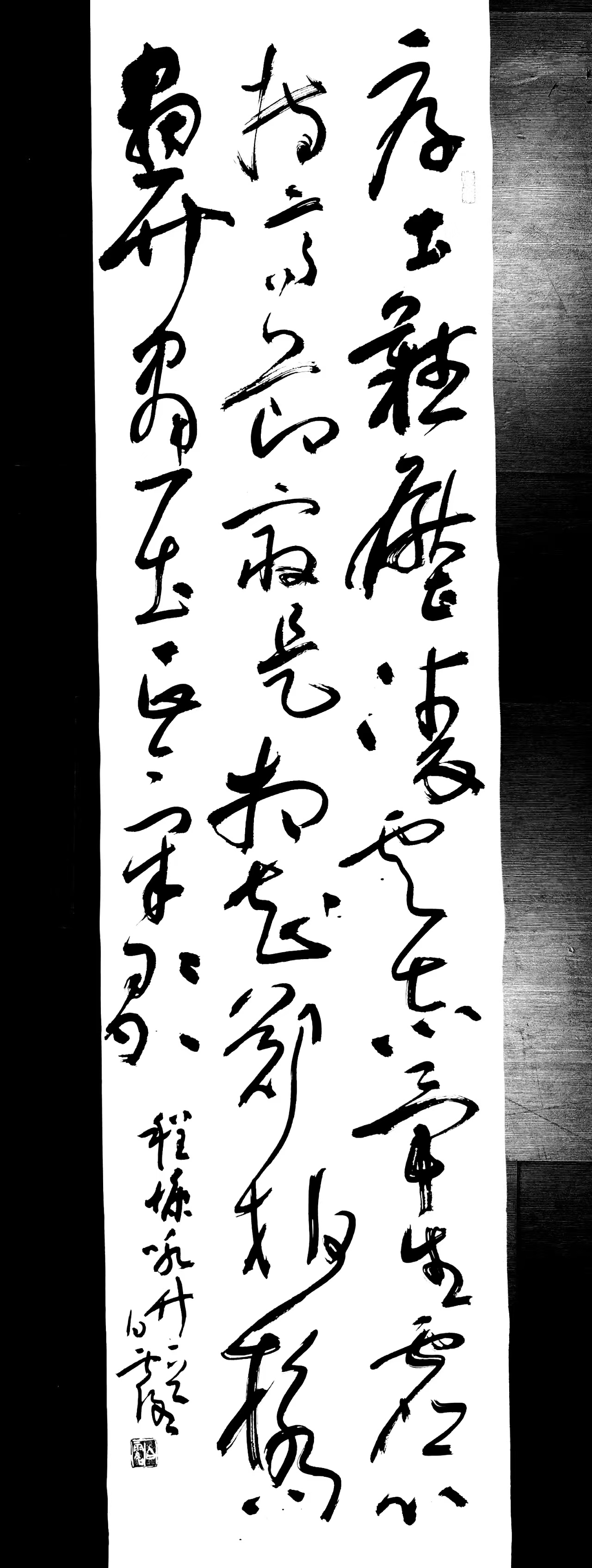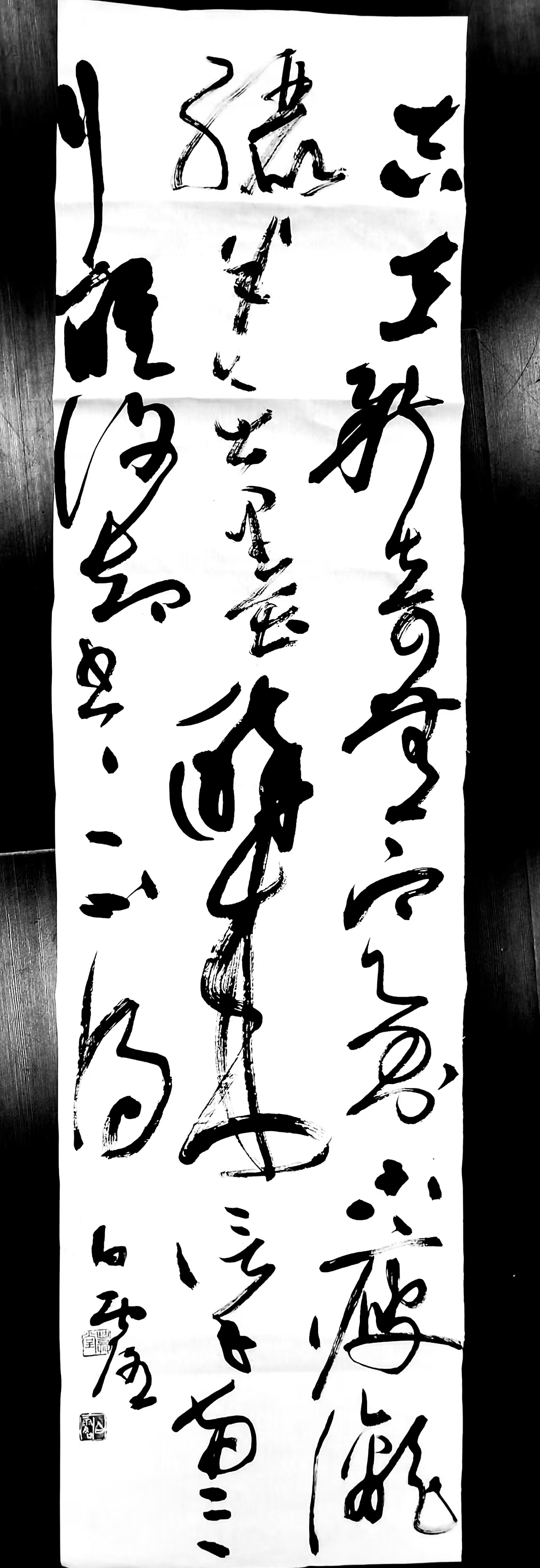 我和丽萍、赵榕遂旁立于案边,静静观之白露先生现场挥毫,他的字带着唐朝的气息轻轻走来,墨随舞动便成为了龙,成为了凤,龙飞凤舞,笔走银蛇之势,或许张旭、怀素是他一生的朋友。