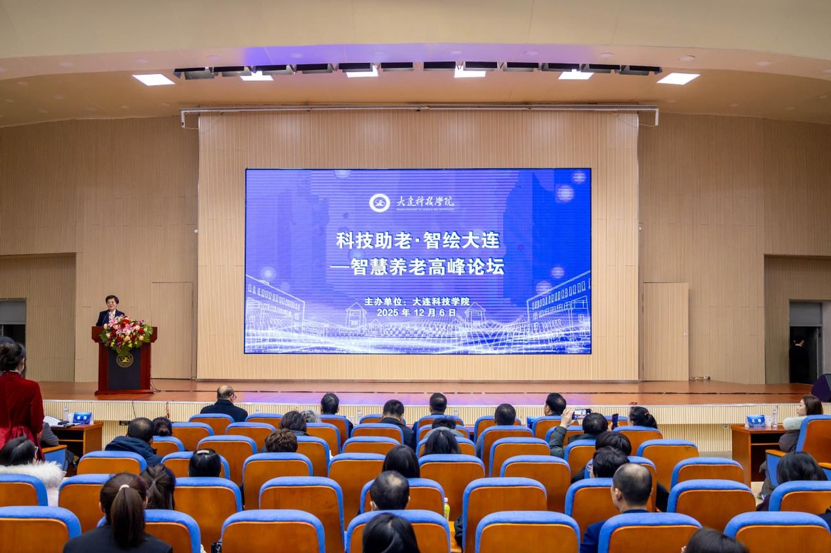 为深入贯彻国家关于积极应对人口老龄化国家战略的重要指示精神,回应我国社会老龄化程度持续加深的现实挑战,2025年12月6日,“科技助老・智绘大连—智慧养老高峰论坛”在大连科技学院成功召开。本次论坛以“数智赋能・人文关怀:探索智慧养老高质量发展新路径”为核心议题,汇聚政、产、学、研、用多方力量,搭建起智慧养老领域理论研究、技术创新与实践探索的高端对话平台,为区域老龄事业发展注入新动能。大连市委社会工作部副部长管占龙、旅顺口区委社会工作部部长石军等相关部门领导,原大连科技学院校长杨德新,大连科技学院副校长李宝章,以及来自香港、深圳和大连本地的养老领域权威专家、社区工作者、养老机构代表、相关企业负责人与大连科技学院经济管理学院师生共同出席了本次论坛。论坛由大连科技学院经济管理学院院长刘爽主持。
