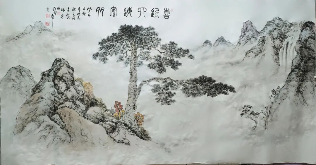 国画《千山竞秀万里云》