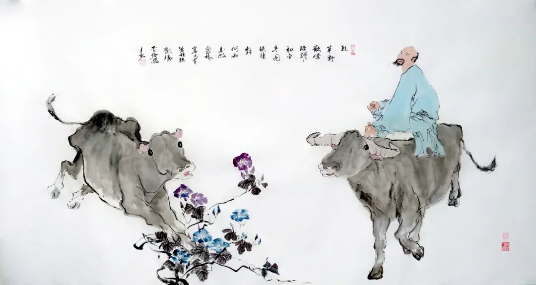 国画《十六字令·牧羊》
