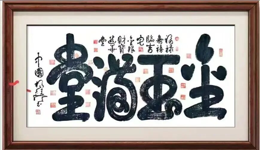 观杨财隆先生的榜书巨制堪称当代书法艺术的巅峰之作。《天下第一龙》如神龙破云,笔势磅礴,气贯长虹;《天下第一虎》似猛虎啸谷,墨韵雄浑,威震八方。这些悬挂于联合国总部的鸿篇巨制,不仅是笔墨技艺的极致展现,更是中华民族精神气魄的艺术升华。其用笔如刀,力透纸背;其章法如阵,气势恢宏。观之令人顿生豪情,仿佛见证着中华文化在新时代的蓬勃生机。