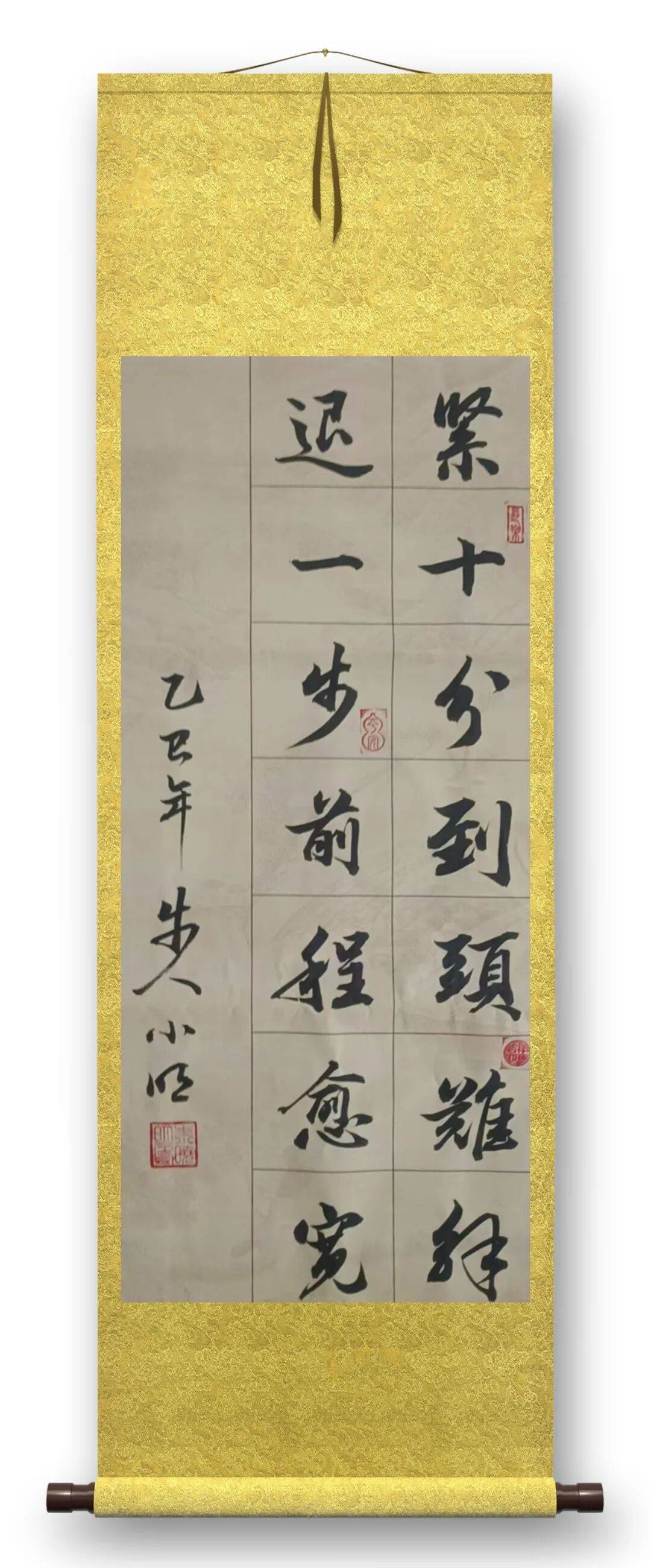 朱钇名先生的行书,笔墨酣畅淋漓,气势磅礴大气,线条时而粗壮有力,时而纤细灵动,结字时而紧凑密集,时而疏朗开阔,章法布局错落有致,一气呵成,展现出极强的艺术张力。在书写过程中,朱先生注重情感的表达,将自己对文本内容的理解与感悟融入笔墨之中,使作品具有了丰富的情感内涵,让观者在欣赏书法艺术的同时,也能感受到文本所蕴含的文化魅力。