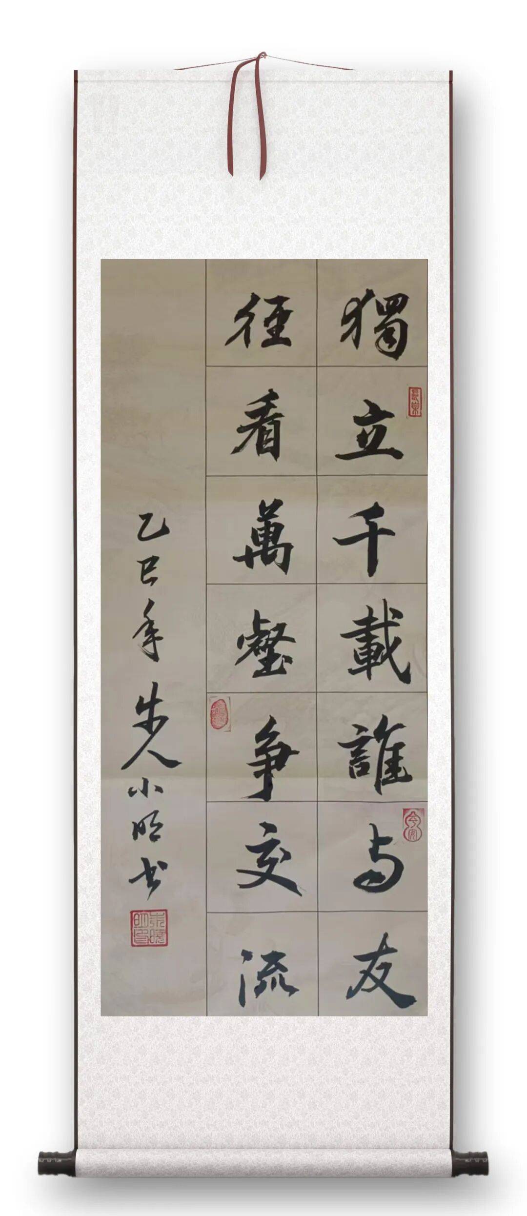 在行笔上,朱钇名先生注重力度的控制,线条时而粗壮有力,时而纤细灵动,展现出极强的线条表现力。在收笔上,他注重回锋与出锋的结合,有的收笔回锋,圆润饱满;有的收笔出锋,飘逸洒脱。尤为难得的是,朱先生的笔法具有很强的节奏感和韵律感,他通过对笔法的巧妙运用,使线条富有变化,形成了独特的艺术节奏,让观者在欣赏书法作品的同时,也能感受到一种美的享受。