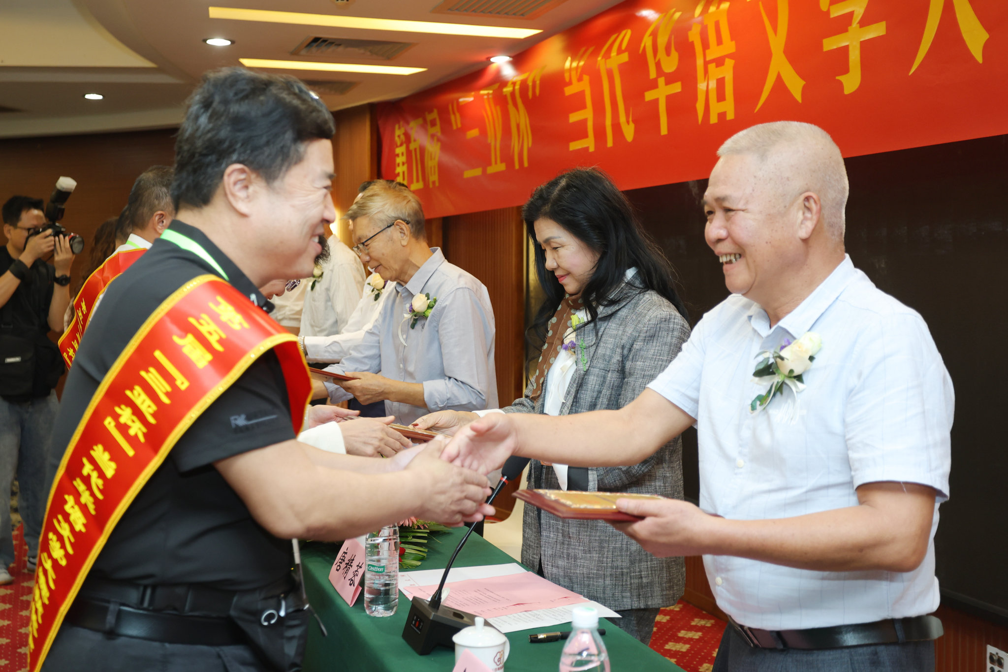 海南省作协报告文学创作委员会主任唐精蓉、三亚市作协副主席高照清在颁奖