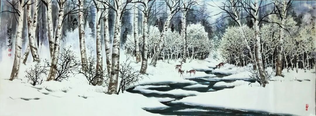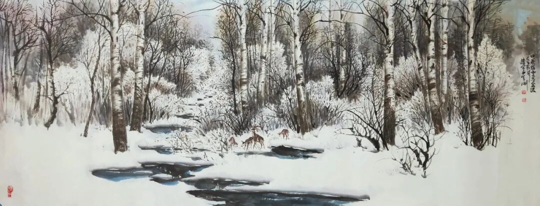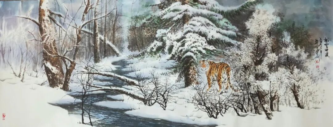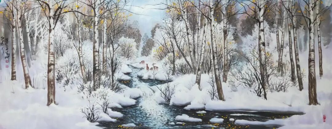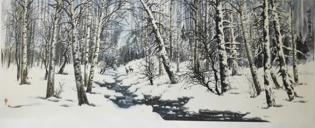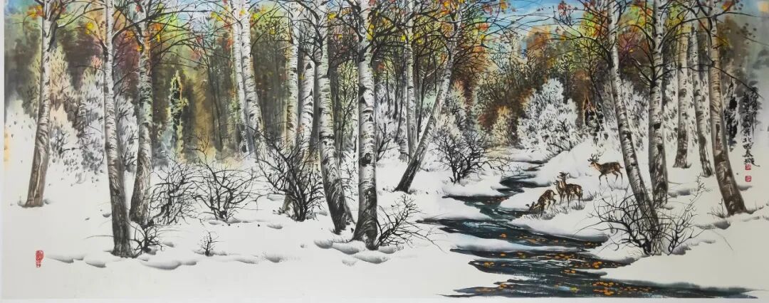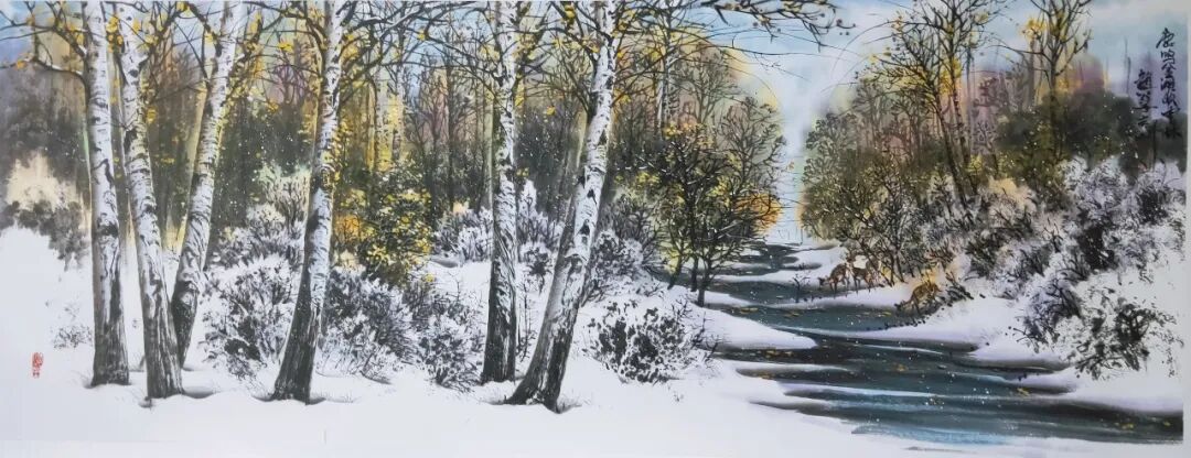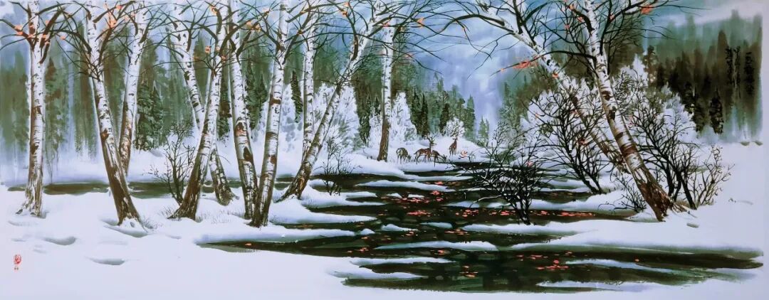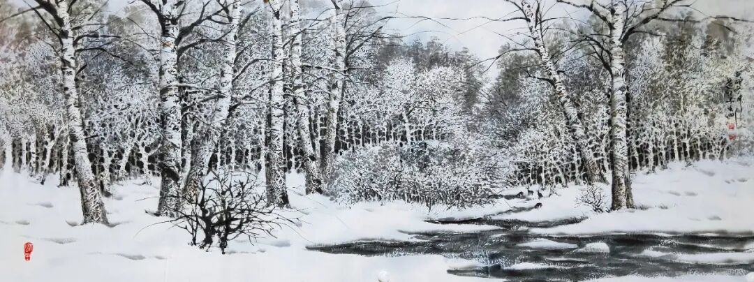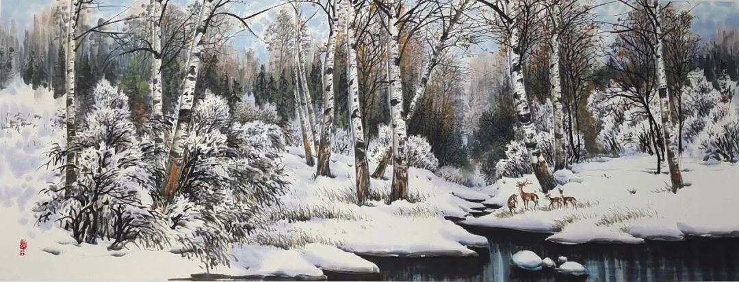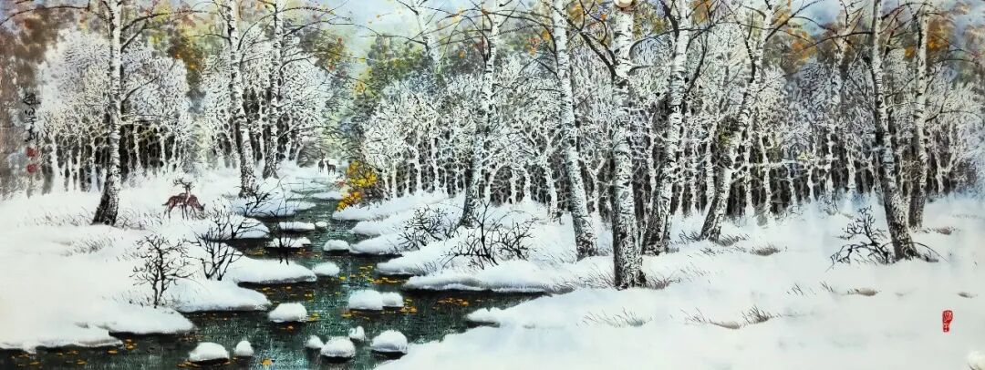 其作品场面宏大,色泽艳而不俗,构图严谨笔法细腻洒脱,层次分明,画面柔和的恰到好处,给人一种自然清新、身临其境的感觉,在创作技法上做了大胆尝试,为充分表现大自然的气象万千,不拘于任何一种传统技法,讲究笔墨基础上运用了多种技法使人眼前一亮的视觉冲击力,作品被大量海内外书画爱好者收藏,被人们誉为冰雪画传播的使者,白桦王子称号当代实力派画家。