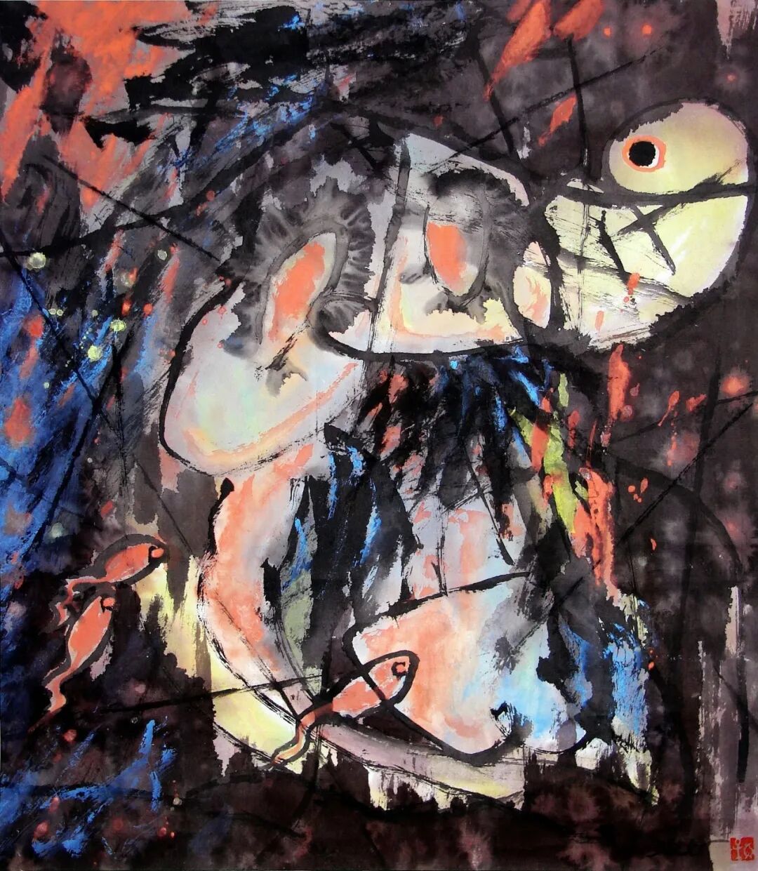 在坚守传统的同时,谢厚星先生也从未停止探索与创新的步伐。他的作品中还有墨彩实践抽象创作的精彩,以墨彩的独特语言,展现天地间浑然一体的宇宙观,表达“道可道,非常道”的哲学思考。这些创新尝试拓展了中国画的表现领域,为中国美学发展注入了新的活力。谢厚星先生的抽象作品就像是打通了艺术与哲学的壁垒边界,证明中国画不仅可以承载深厚的文化底蕴,同样能够表达现代美学精神观念,为各科艺术创新提供出了启示与灵感,是对“传承与创新”的完美诠释。他的作品对传统充满尊重继承,对未来怀有热烈的探索实践,推动中国画跨越时空贯通古今,形成了蓬勃向未来的全新魅力!