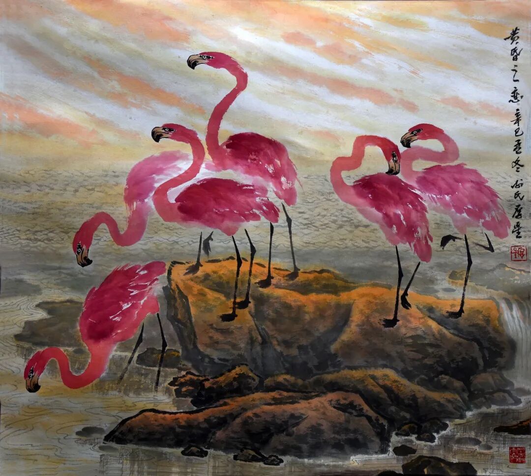 谢厚星先生在中国画天地研习深耕数十年,成为挥笔纵墨写意万类的大手笔。他对中国画法的理解与实践从技法层面起步,却超越了技艺走到了文学哲学高度,创作时可以将传统笔墨精神进行深度挖掘,然后切意现代审美意识,作出传承与创新的巧妙融合,笔墨格局不凡,既有古人的笔墨风骨,又不失个人的创新精神,形成了独树一帜的全新风格。在他的作品里,梅花不是静止的风物,而是俏不争春的高洁君子,花鸟带着来源于自然的生态,凝结情感思想寄托,落笔丰神迵异,处处都是超越视觉的艺术华章!