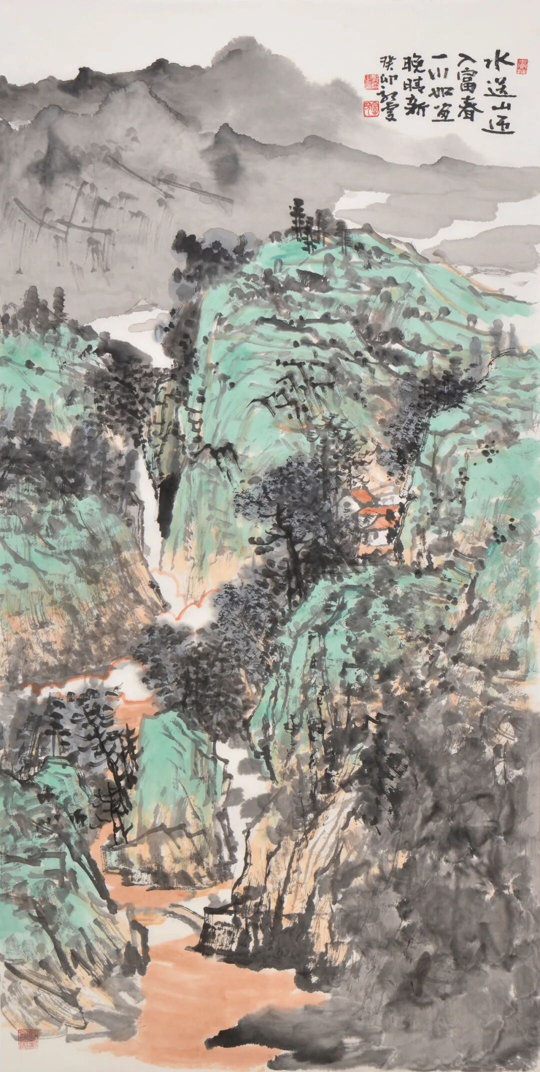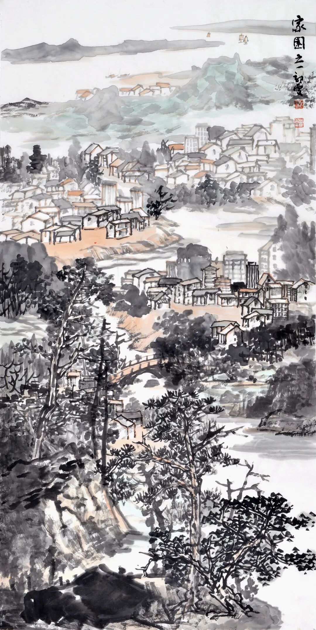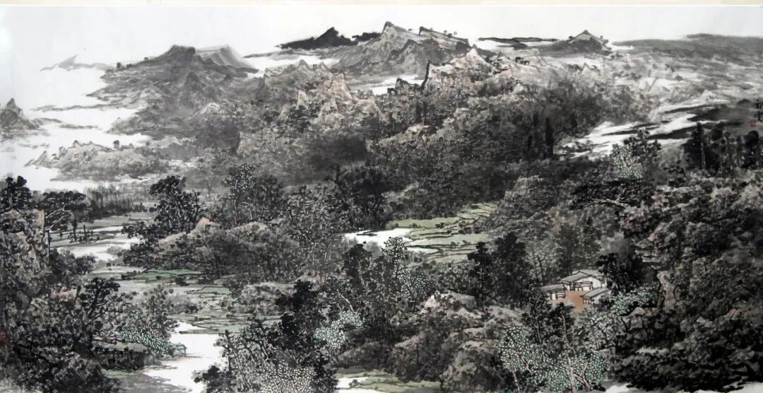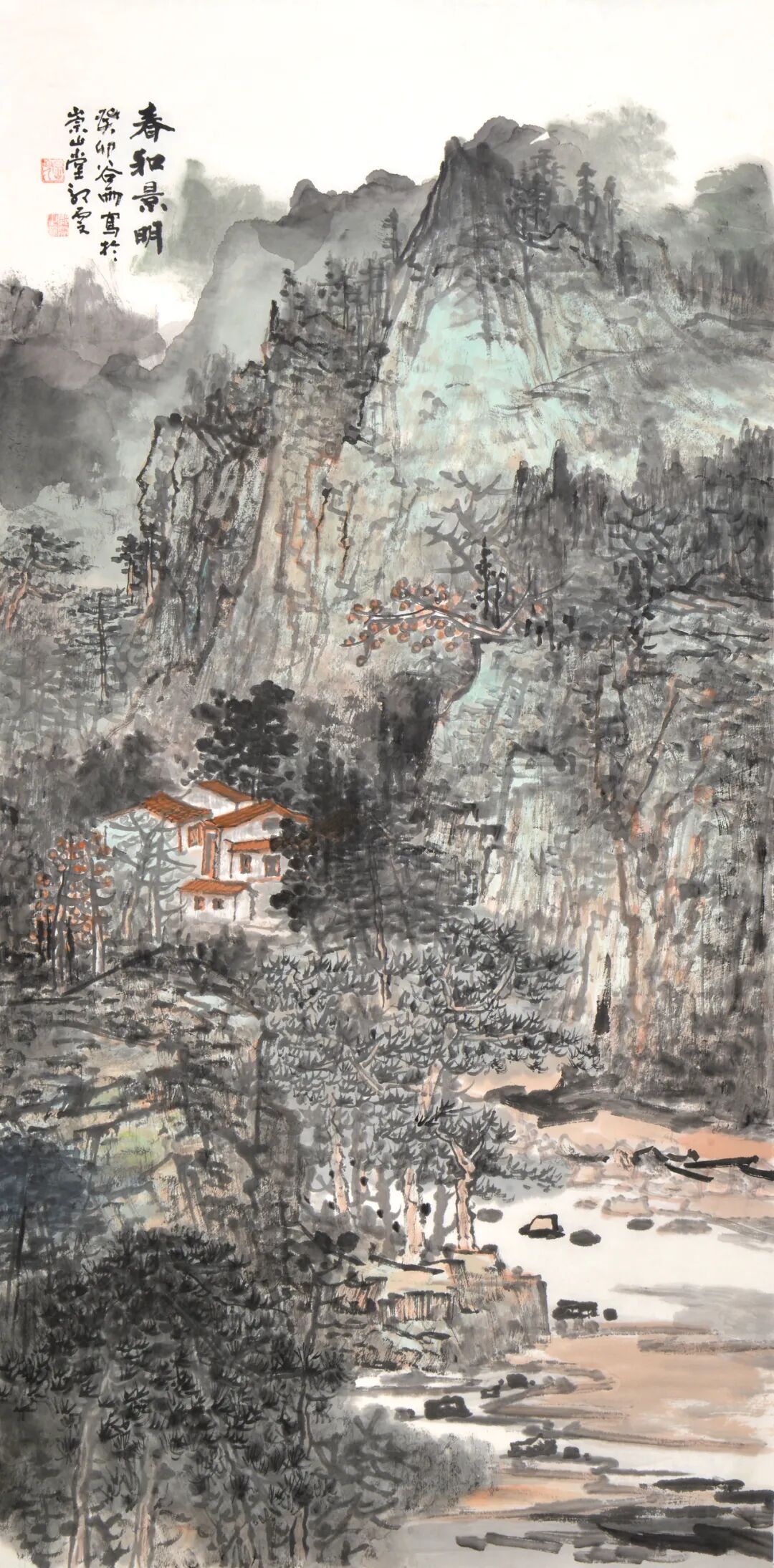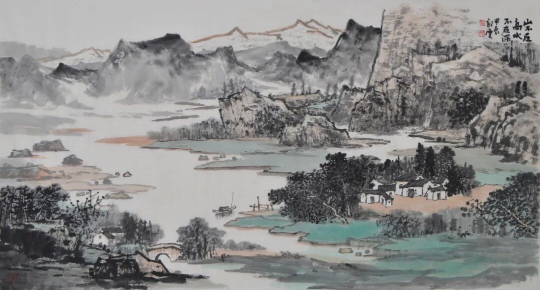 郭雯的作品可以用“恬静灵动总相宜”来形容她的艺术风采。恬静,从她的画中能看到追求的玉宇无尘的境界。画面干净雅致,线条稳重,不急不躁,表达了她内心所向往的美好世界。借助笔墨,把自己的感悟流露纸上,使画作有淡然释怀、徐风拂面之感。灵动,是她山水画呈现出来的万木葱茏,潺潺溪流,瀑布直下,云飞雾腾,表现了山水的蓬勃生机,昂扬的生命力。近则高山耸立,远则峰峦叠嶂,烟雾缭绕,荡气回肠,趣味跃然生动。