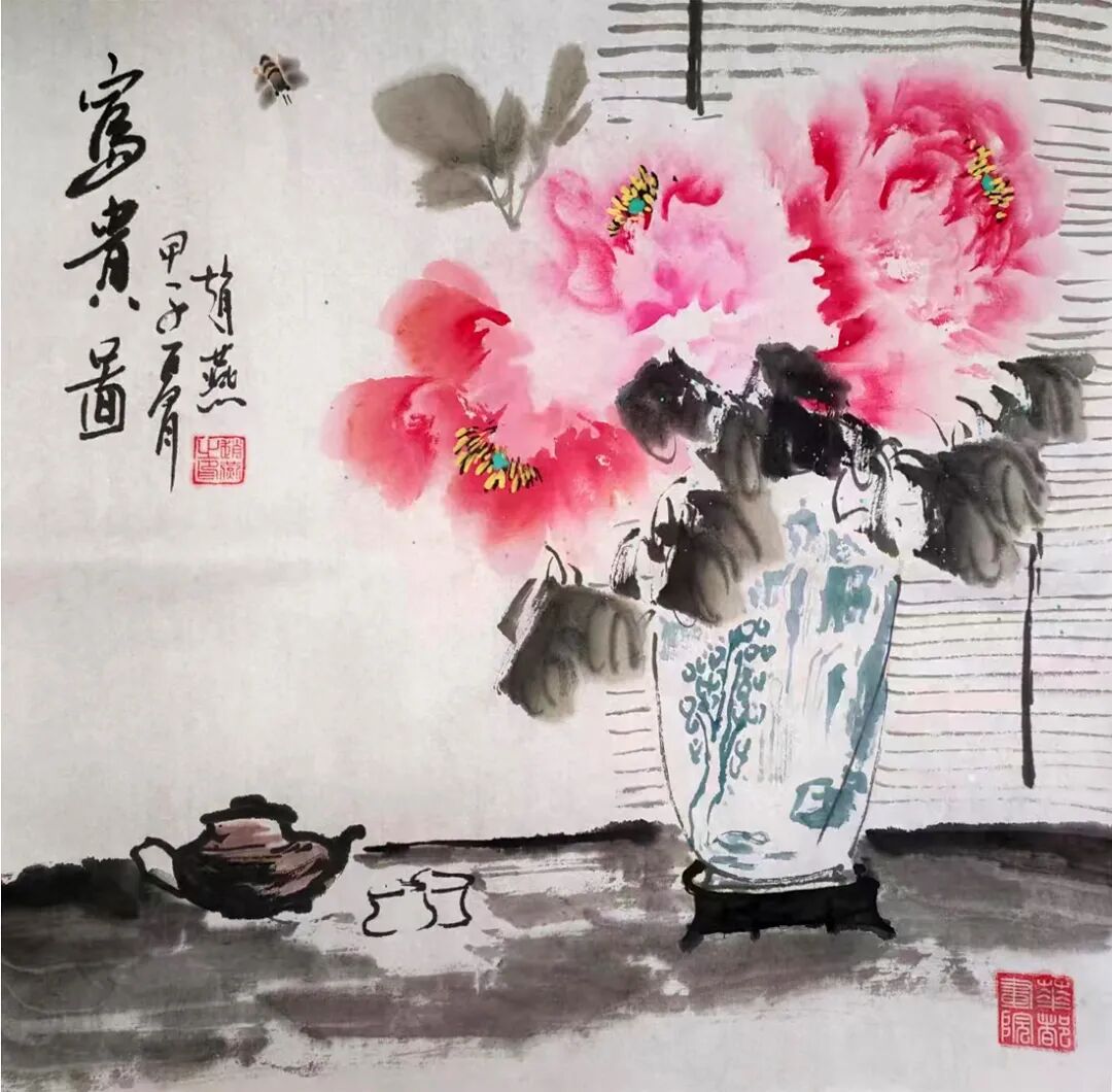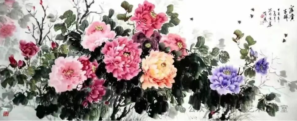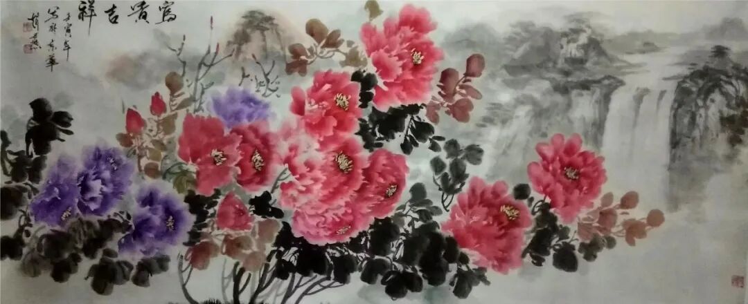 在题材选择上,赵长军尤擅山水与牡丹,既承续传统文人画的审美基因,又赋予作品鲜明的个人特质。他笔下的山水,并非对自然景致的刻板摹写,而是将主观情怀与精神哲思融入丘壑烟岚,皴擦点染间构建出可游可居的精神桃源,透着空灵静谧的意境;其牡丹作品则独具匠心,摒弃了常见的浓艳俗套,以雅正之笔勾勒花姿,以清润之墨渲染神韵,既展现国色天香的雍容气度,又暗含“一花一世界”的禅意哲思,在形神之间达成完美平衡。