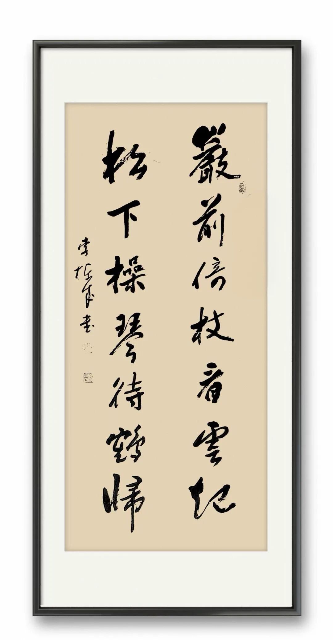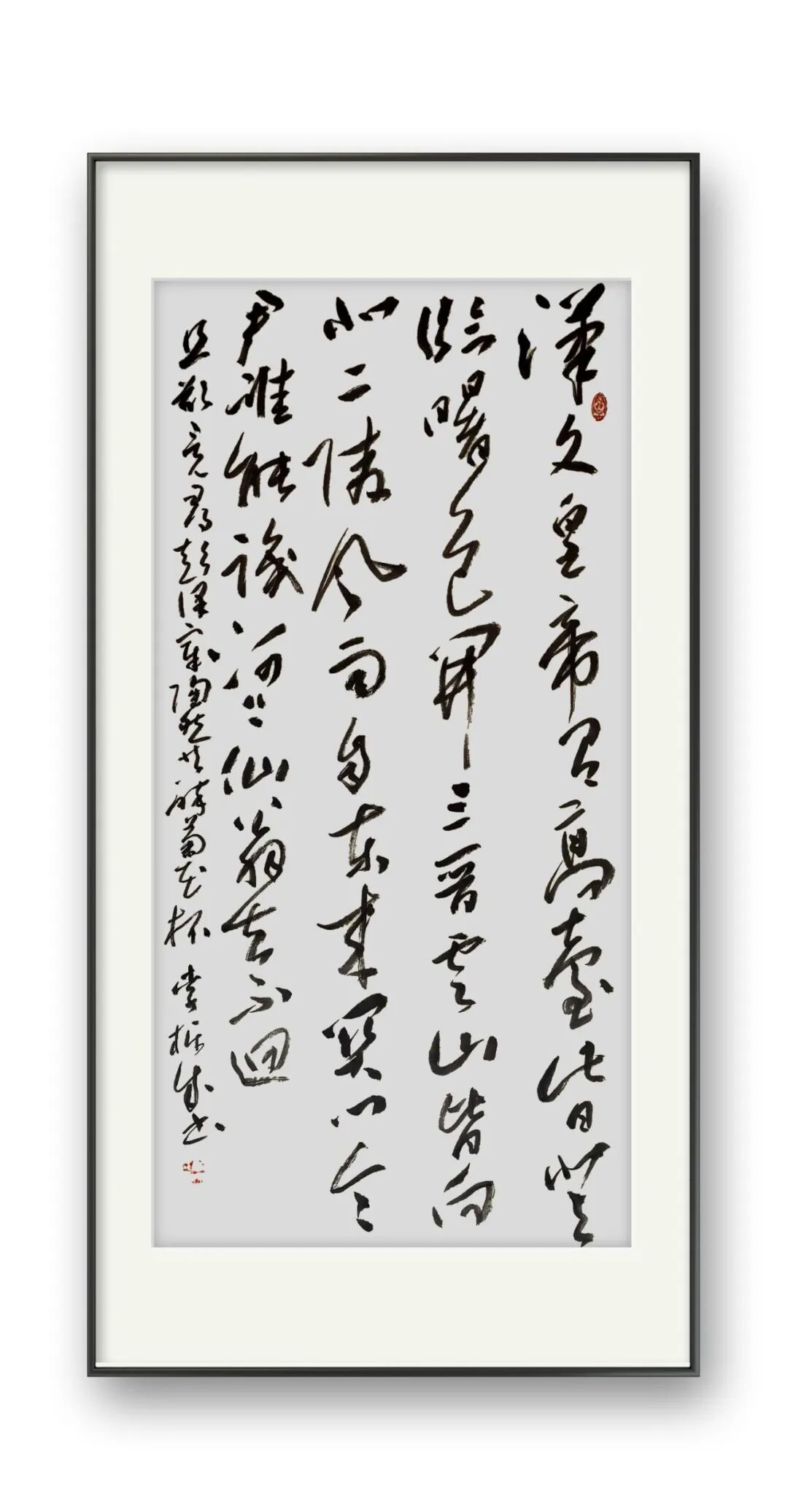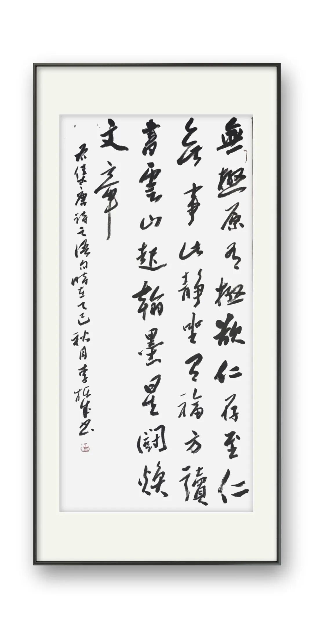 李栋成书法的根基深植于魏晋风骨,尤以二王帖学正脉为宗。其行草取法《十七帖》《书谱》,于飘逸中见法度,既得孙过庭“草以点画为情性,使转为形质”的精髓,又融王铎“连绵草”之跌宕,形成“流美而不失骨力”的独特韵致。在碑帖融合的探索中,他巧妙调和于右任标准草书的简净与魏碑的方峻,笔下既有褚遂良《雁塔圣教序》的秀润,又暗藏《张猛龙碑》的峭拔,于外方内圆的笔意间彰显项穆“会古通今,不激不厉”的审美理想。这种取法路径不仅延续了帖学的文脉传承,更以金石气息注入时代精神,使传统笔墨焕发新生。