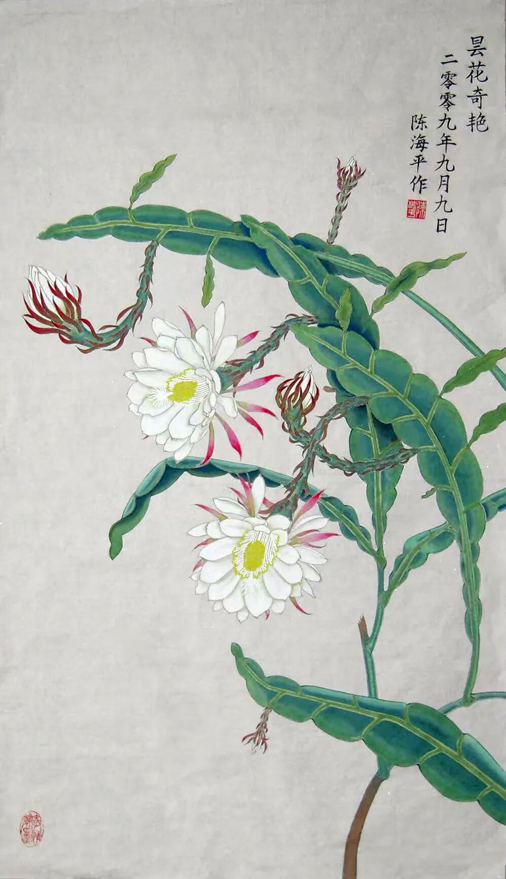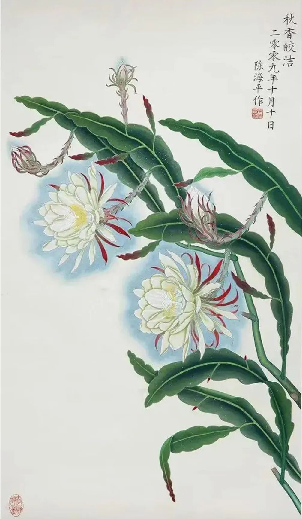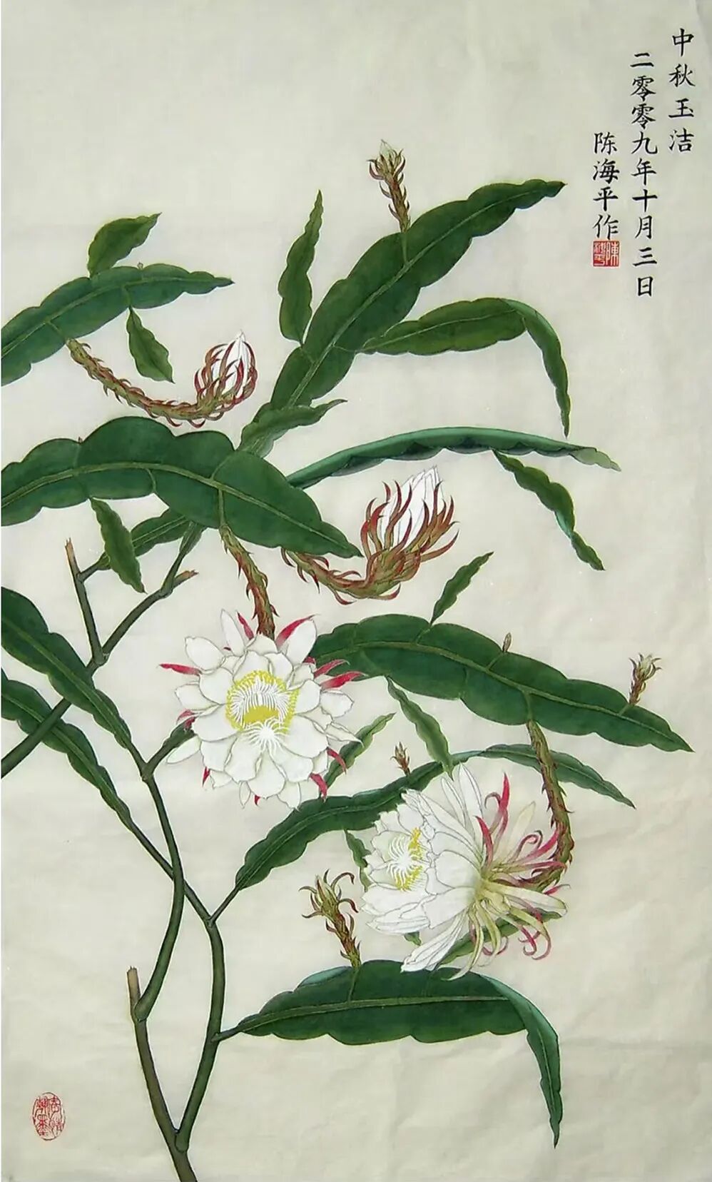 2006年12月,工笔花鸟画《香飘南》被辑入由中国国际出版社出版的《盛世中华》,中国文化信息协会赠:"陈海平同志荣膺2006中国对外文化交流《盛世中华》中国优秀企业领航人代表",并被授予"中华风彩人物。2007年7月,出席于北京人民大会堂召开的第六届中国科家论坛。2009年5月1日,被中国报纸副刊研究会、书画艺术委员会授予"全国劳动英模五一座谈会特邀嘉宾"荣誉称号,工花鸟画作品入选《中华各届行业杰出人物大典》之精品书画艺术作品集锦篇。2009年8月,所撰写的六则格言被中国中外名人文化研究会评为优秀作品,并辑入中国文史出版社出版的《中外名人格言》。2009年10月,国画作品被中国书画家联谊会北京艺术创作中心评为"金"奖,并辑入《激情岁月·庆祝建国六十周年诗书画精品集》,并任该书的特约编委。2009年10月,陈海平的工笔花鸟画《出淤泥而不染》于中央文史研究馆书画院南方基地,入选由广东省人民政府文史研究馆主办的"辉煌中国"-一庆祝中华人民共和国成立60周年书画展,并入编其书画集,作品被主办方收藏。2009年10月,陈海平书画作品被中社会科学研究新闻与传播研究所列入《艺术人生·中华艺术名家》专题纪念邮票名册,同时被辑入《艺术人生·中华艺术名家博览》画册。2009年12月,所撰写的六则格言被入编由中国文史出版社出版的中英文对照版《中外哲理名言》。2009年10月,陈海平携工笔花鸟画作品参加中国书画名家艺术精品世界巡回展-一中国书画名家名作日本大展,工笔花鸟画《昙花争艳》、《中秋玉洁》于日本广场美术展厅参加日本大展,参展作品受到国际墨画协会会长阿木正直(木风子)的好评。2009年11月携工笔花鸟优秀作品《蝴蝶双飞得意》、《寿带报春》于俄罗斯圣彼得堡参加中国书画名家艺术精品世界巡回展--第四届俄罗斯大展,其参展作品受到俄罗斯艺术家协会副会长瓦西里依维奇、俄罗斯列宾美院院长助理维克多的赞誉,展出后获得俄罗斯艺术家协会颁发的"人民艺术家"证书。2010年3月,陈海平携工笔花鸟优秀作品《秋香皎洁》《昙花奇艳》于法国巴黎欧洲时报文化中心书画展馆,参加中国书画名家艺术精品世界巡回展-一法国大展,其参展作品受到法国艺术家的高度评价。2010年4月,国画作品在参加第三届中日友好文化艺术交流展中荣获"金"奖。2012年1月,在参加北京翰墨大家书画院举办的"翰墨大家"杯书画大赛中荣获优秀奖。2012年11月,于北京人民大会堂出席第九届中国科学家论坛。