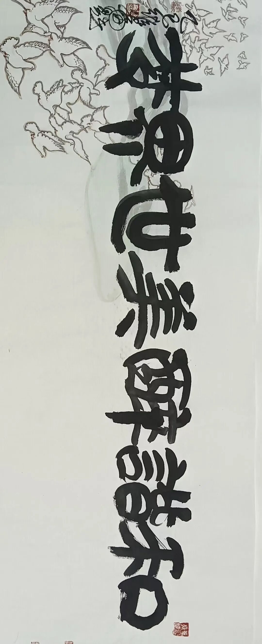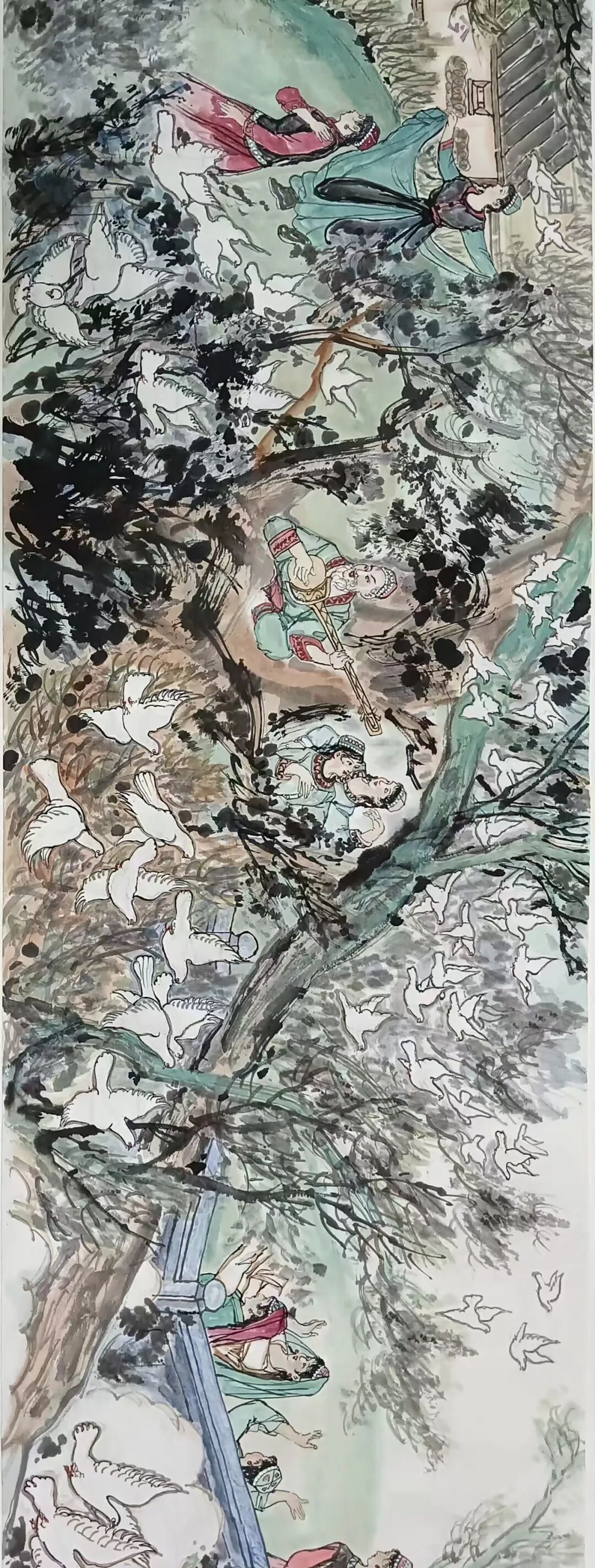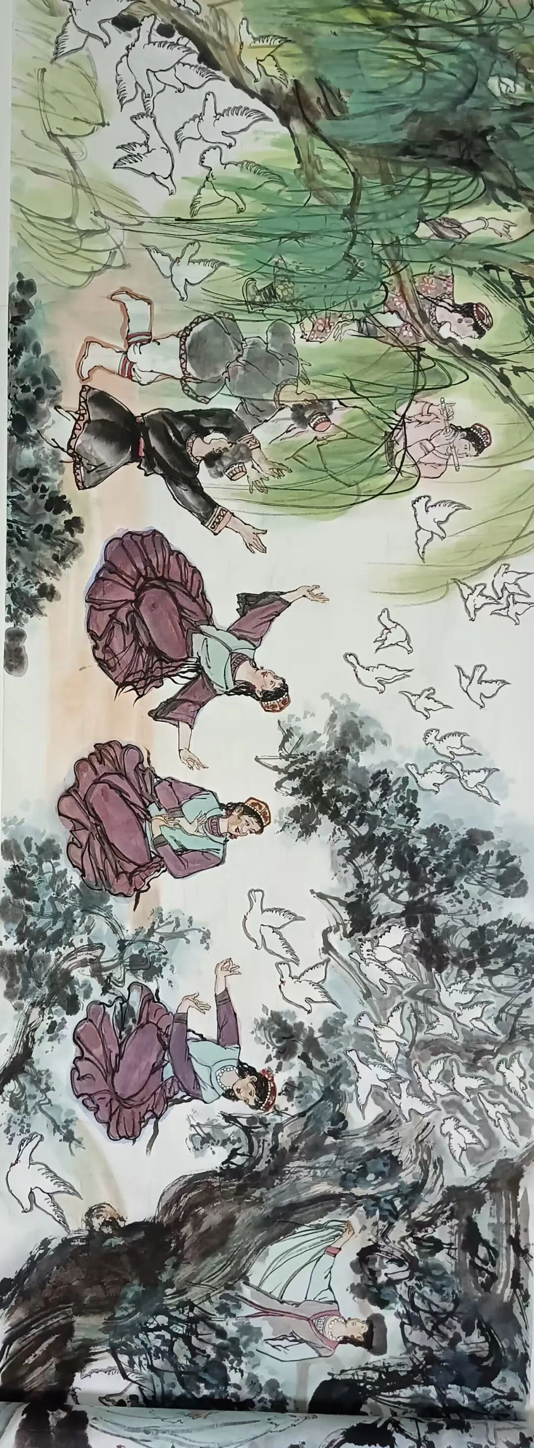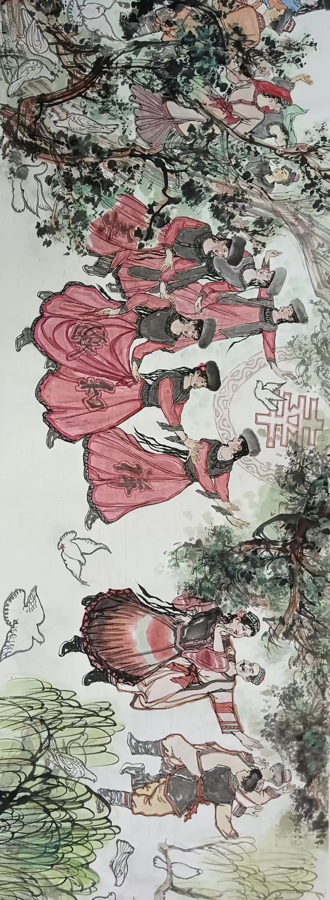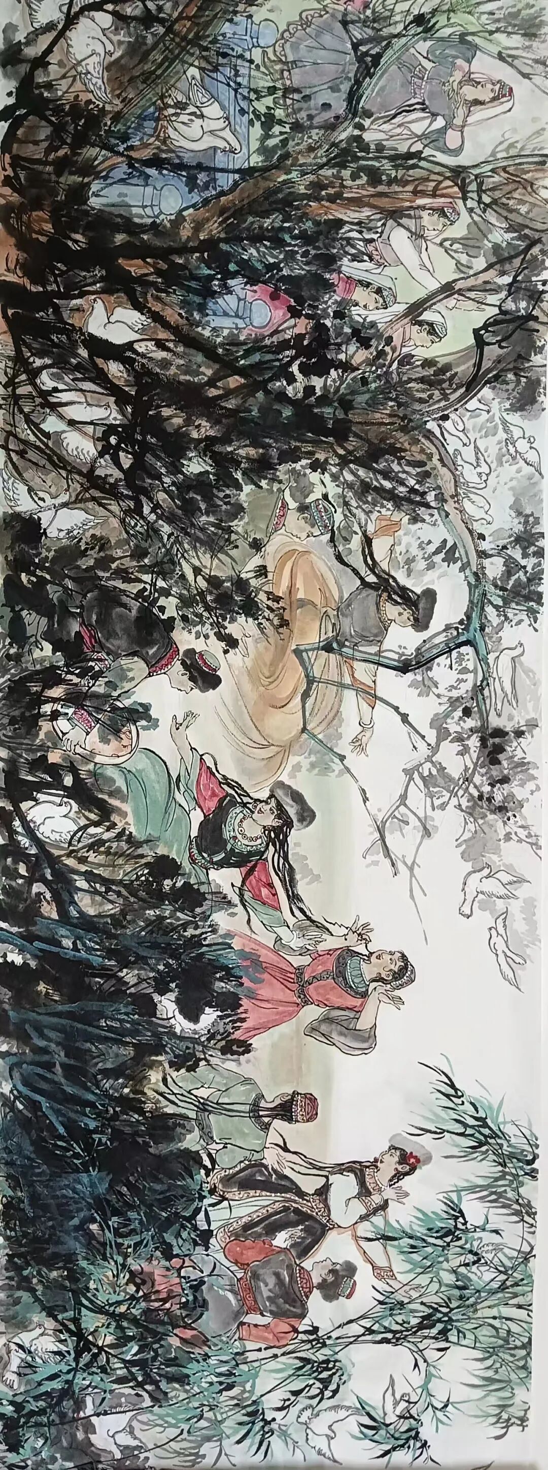八十髙龄刘维仑,必攻不守永创新。维仑高产十三卷,当代清明上河图。又创三卷六十米,美人共计八百多。三卷创举世界梦,华夏醉美新荣光,人物毛驴祥和美,舞姿浩放颂吉祥。三卷盛世普新篇,卷卷心中有三梦,一梦艺术为人民,二梦民族为复兴,三梦世界为和平。中华盛世舞东风,数千飞鸽颂和平。幸福来源皆奋斗,和协醉美世界梦,飞鸽远征颂和平。三幅巨卷今问世,世人和平共心愿,献给世人共和平。