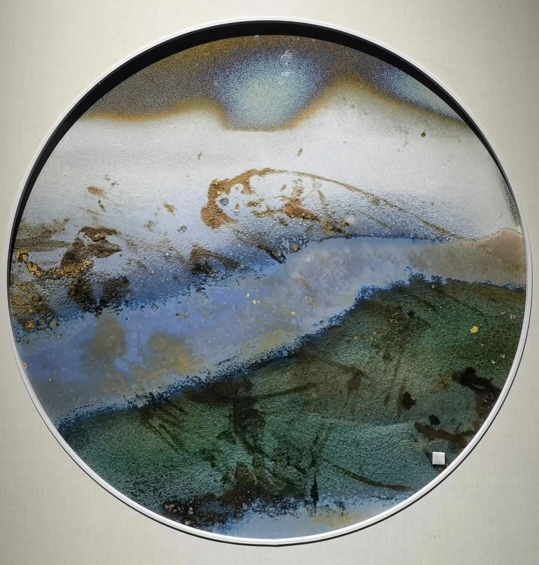 隋知兼的艺术强调“物性”与“心性”的共鸣。瓷泥的质朴、釉料的瑰丽、窑火的烈性,这些物质属性被转化为精神表达的直接媒介。《随缘放旷》《境智俱寂》等作品,通过大面积的色釉平铺、微妙渐变与内在肌理的含蓄涌动,营造出静谧、内省、超越物象的审美氛围。画面不再指向外部风景,而是直接呈现材料在能量(火)作用下凝结的“心境”状态。创作过程中对窑变“偶然性”的坦然接纳,是“随缘”心态的艺术实践;作品最终呈现的圆满和谐,则象征了历经变化后抵达的“俱寂”境界。