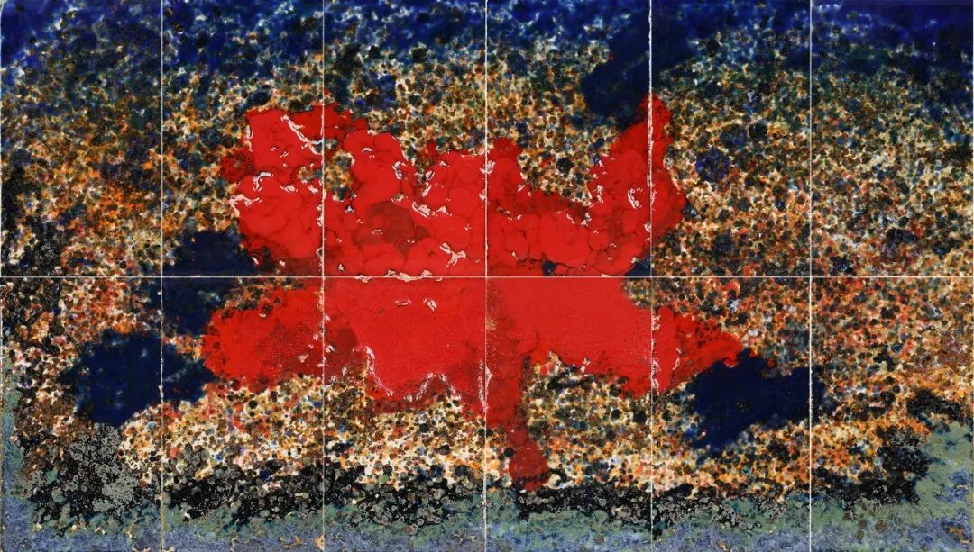 为追求极致的色彩丰富性与光学深度,隋知兼综合运用釉下、釉中、釉上多种彩绘技法,并频繁采用“多次入窑”的复烧工艺。每一次入窑都是一次冒险与叠加,釉层在反复受热中交融、变化、沉淀,最终形成类似古代壁画“多层敷彩”的厚重历史感,又兼具现代绘画的光色微妙与透明层次。这种对工艺极限的挑战,实质上是将时间性与过程性深深地烙印在作品之中,使其成为记录无数次物质转化与艺术决策的时间档案。