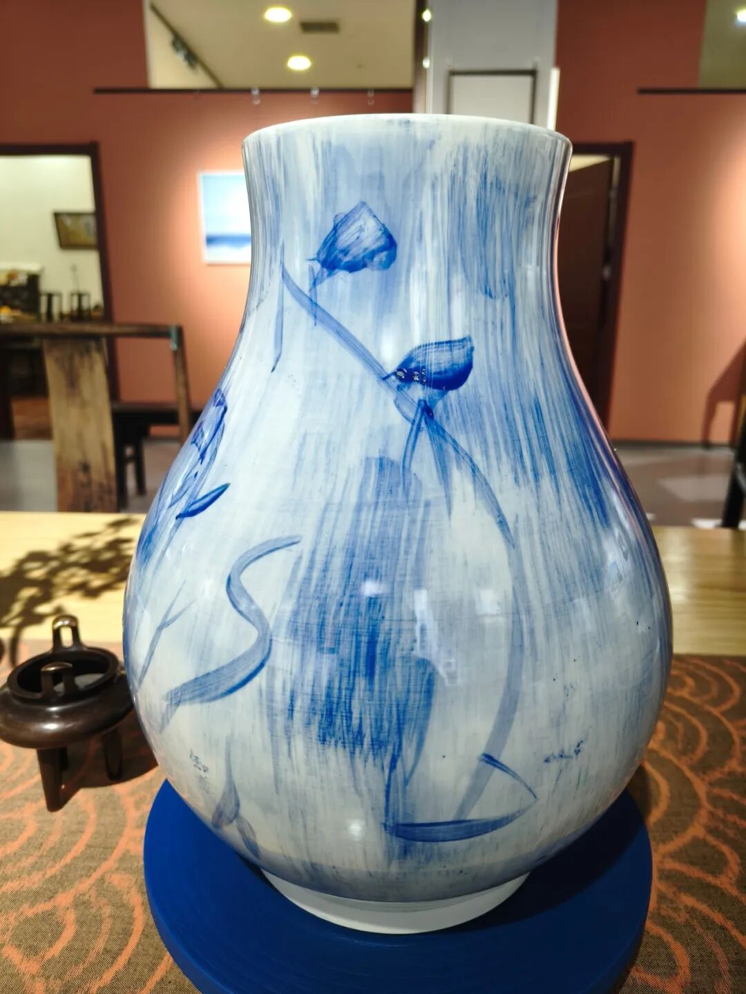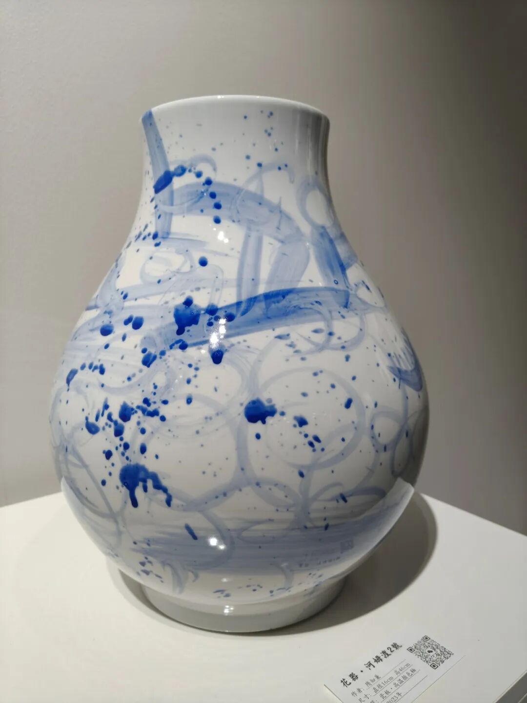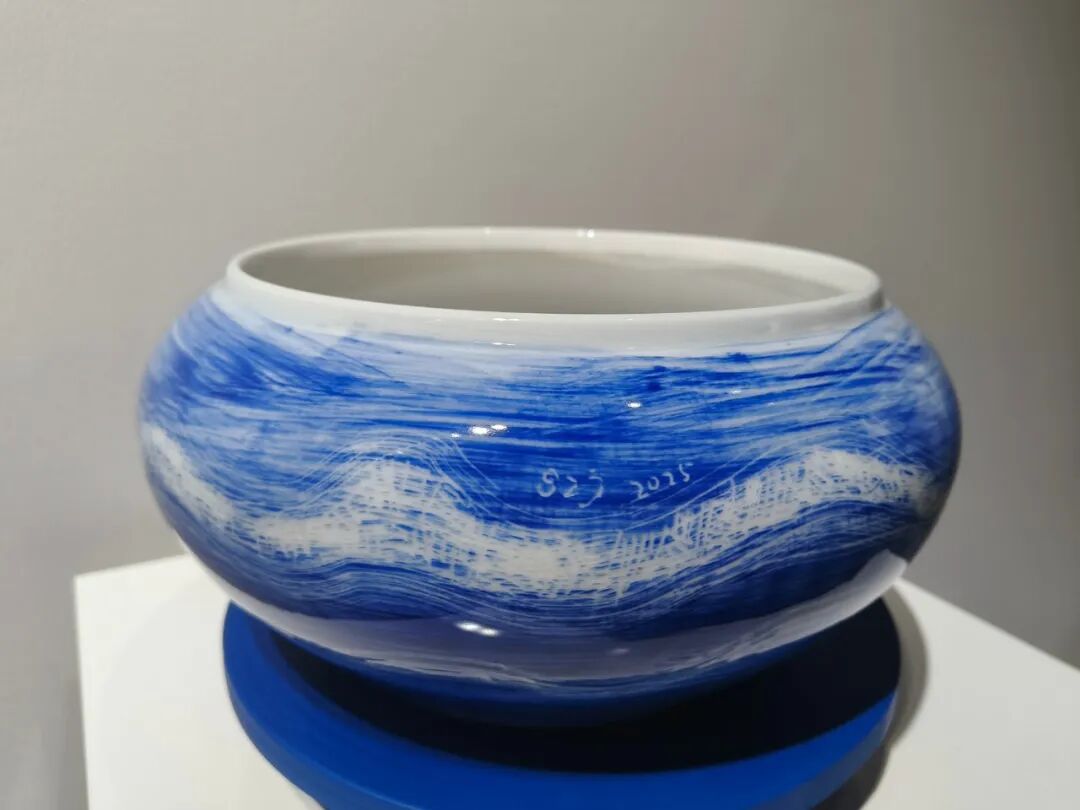 作为植根青岛的艺术家,隋知兼善于将地域特征转化为可被普遍感知的艺术语言。《青岛蓝》并非描绘具体海景,而是通过不同层次、透明度与肌理的蓝色釉彩交织,捕捉海洋城市的空气、光线与灵动气质。《醉渔唱晚》则以抽象化的青花笔意与节奏,通感古琴音乐的韵律。这种创作方法,使地域性题材摆脱了风景再现的束缚,升华为关于“光感”、“气韵”与“节奏”的普世性审美体验。这也解释了其作品何以能在台北、拉斯维加斯等不同文化语境中引发共鸣,并在“一带一路”等文化交流中扮演桥梁角色——它们以独特的东方材质哲学,参与了全球当代艺术的对话。