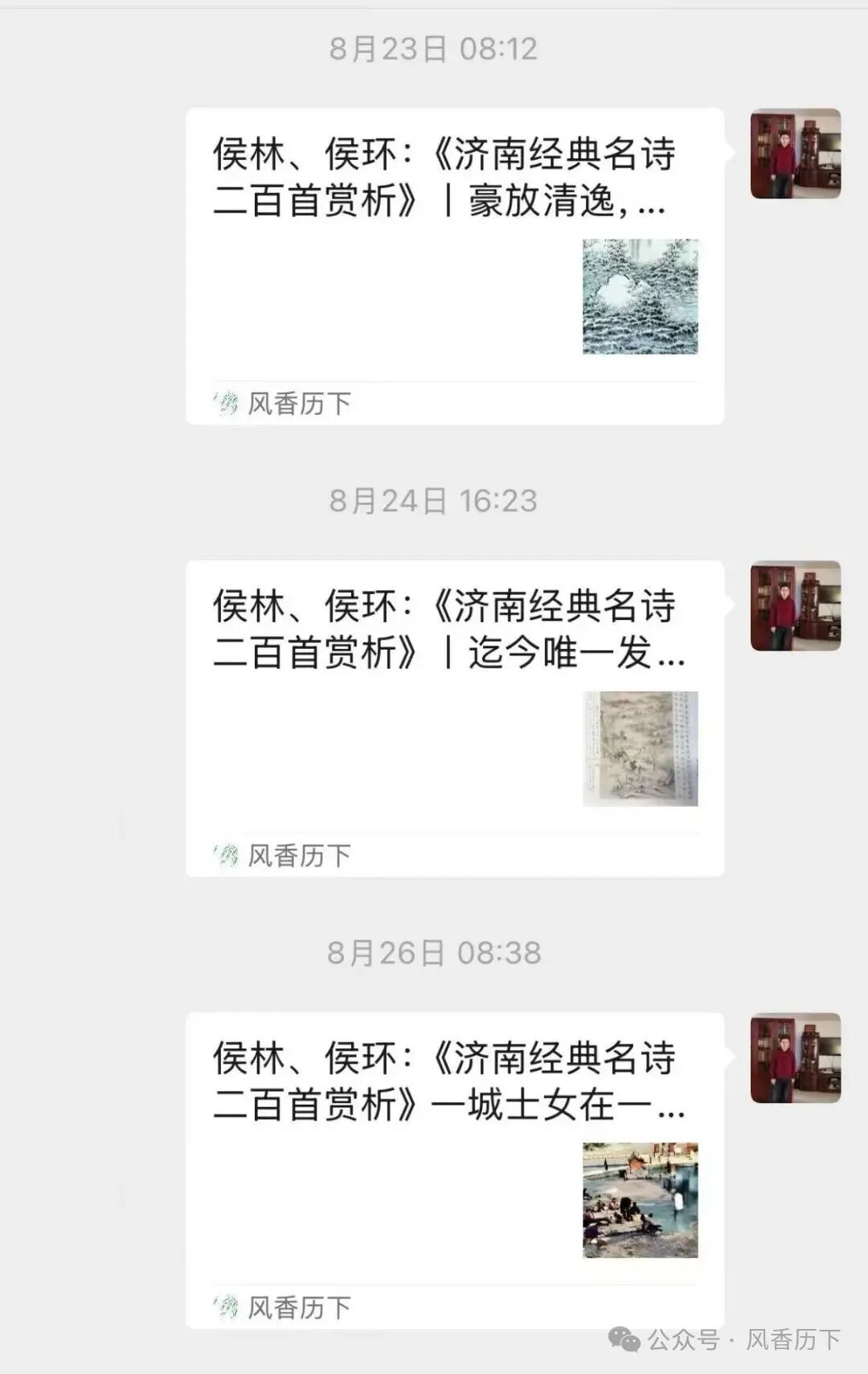 2025年,我与女儿侯环合作,撰写专著《老街巷的济南名士》,以及“风香历下”专栏《济南经典名诗二百首赏析》《济南经典美文一百篇赏析》等,文章计八十余篇。