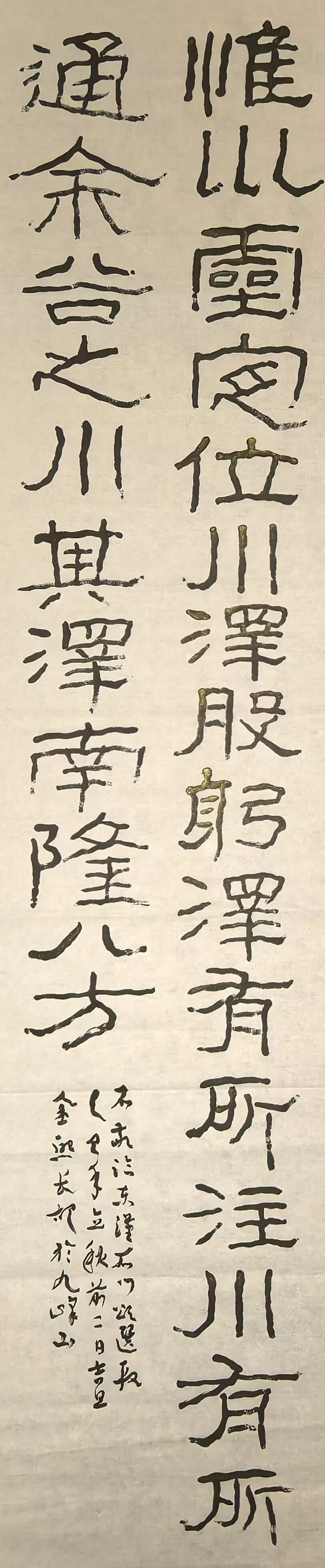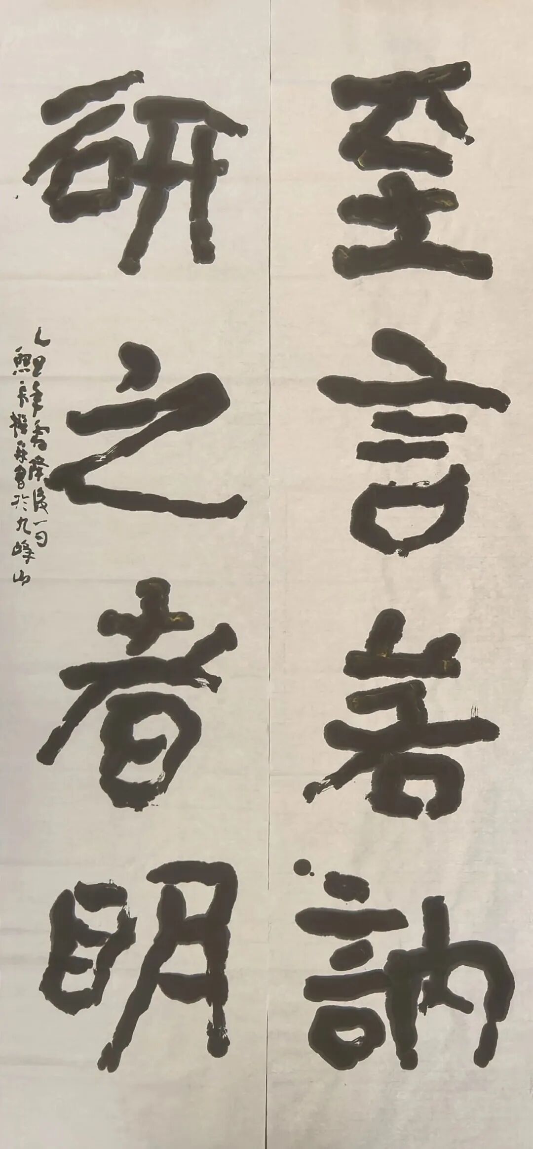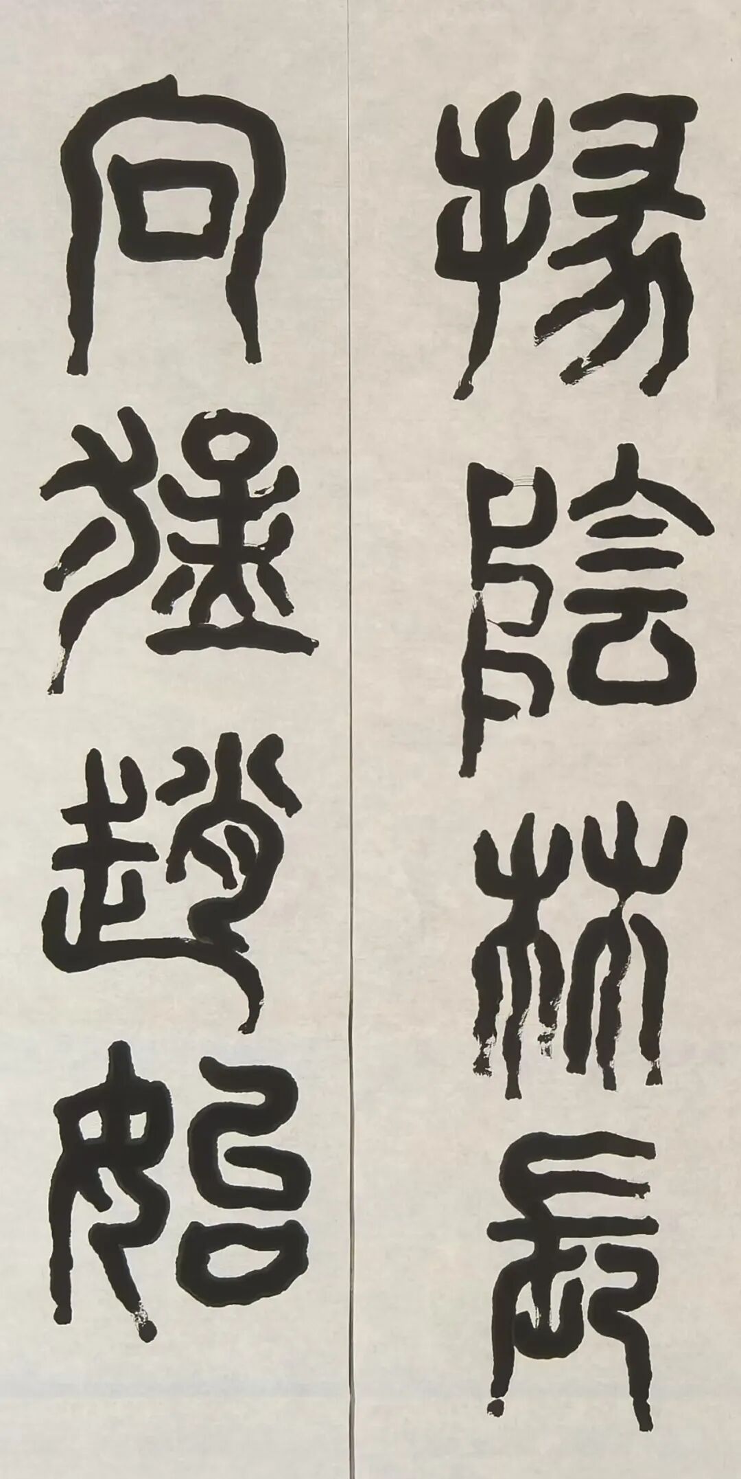 世人观书多用眼,我则主张“若用眼观终难懂,耳处辨书方得知”。篆籀笔法内含“金气四象”(清若洗月、远如渡云、沉同雷音、亮比电裂)与“石气三劫”(裂痛、蚀痒、冻噤)。临写时,需用耳谛听:笔锋与纸的摩擦,可是刻石之声?墨渖的聚散,可有熔铜之韵?飞白之处,是否传来风蚀千年般的幽鸣?如此,方能接通线条背后的生命律动。