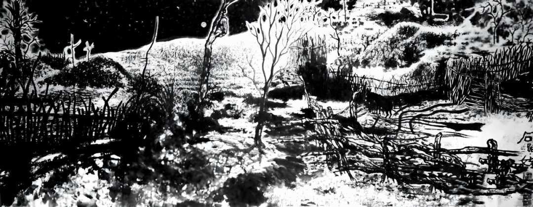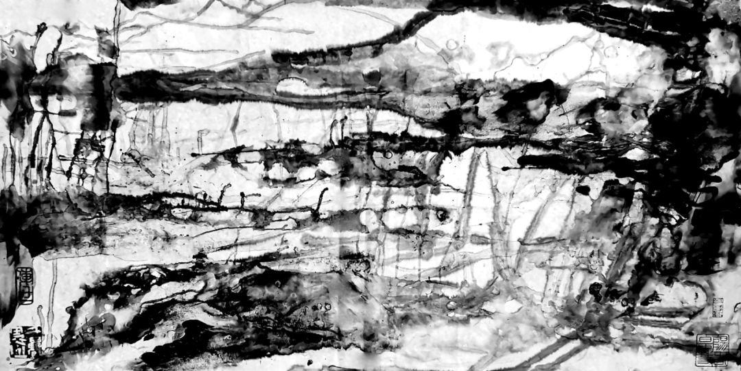 八、石头娃创造了自己的水墨法:“水重乱柴皴”,其画法苍劲有力、深邃冷峻,凸显了大西北的雄浑万里和秦风的刚柔并济,让人回味无穷。