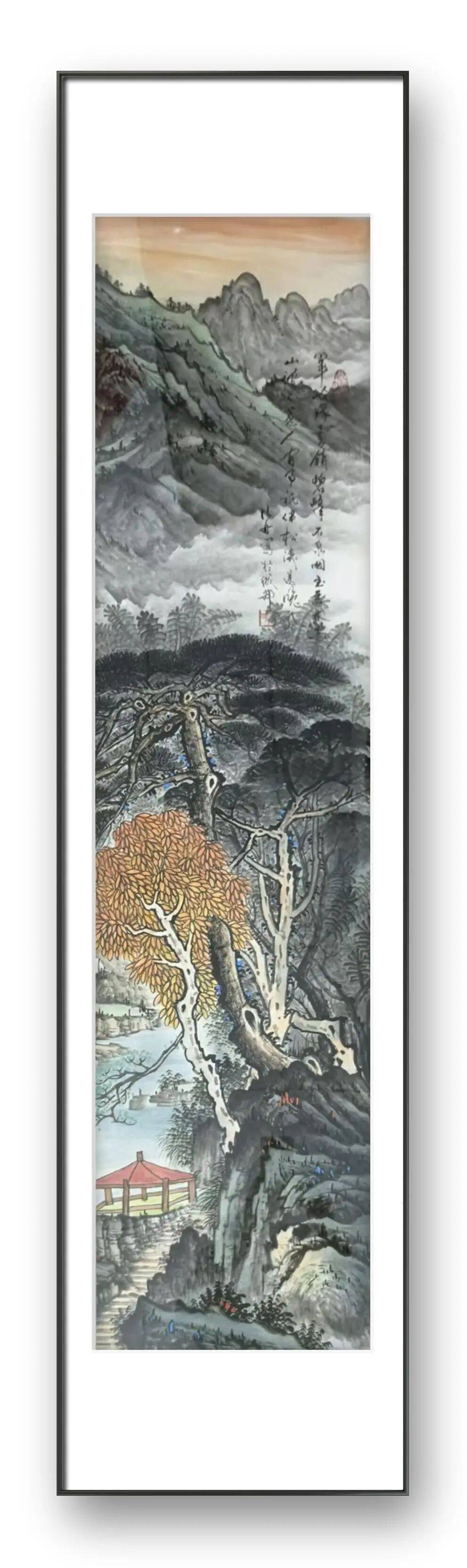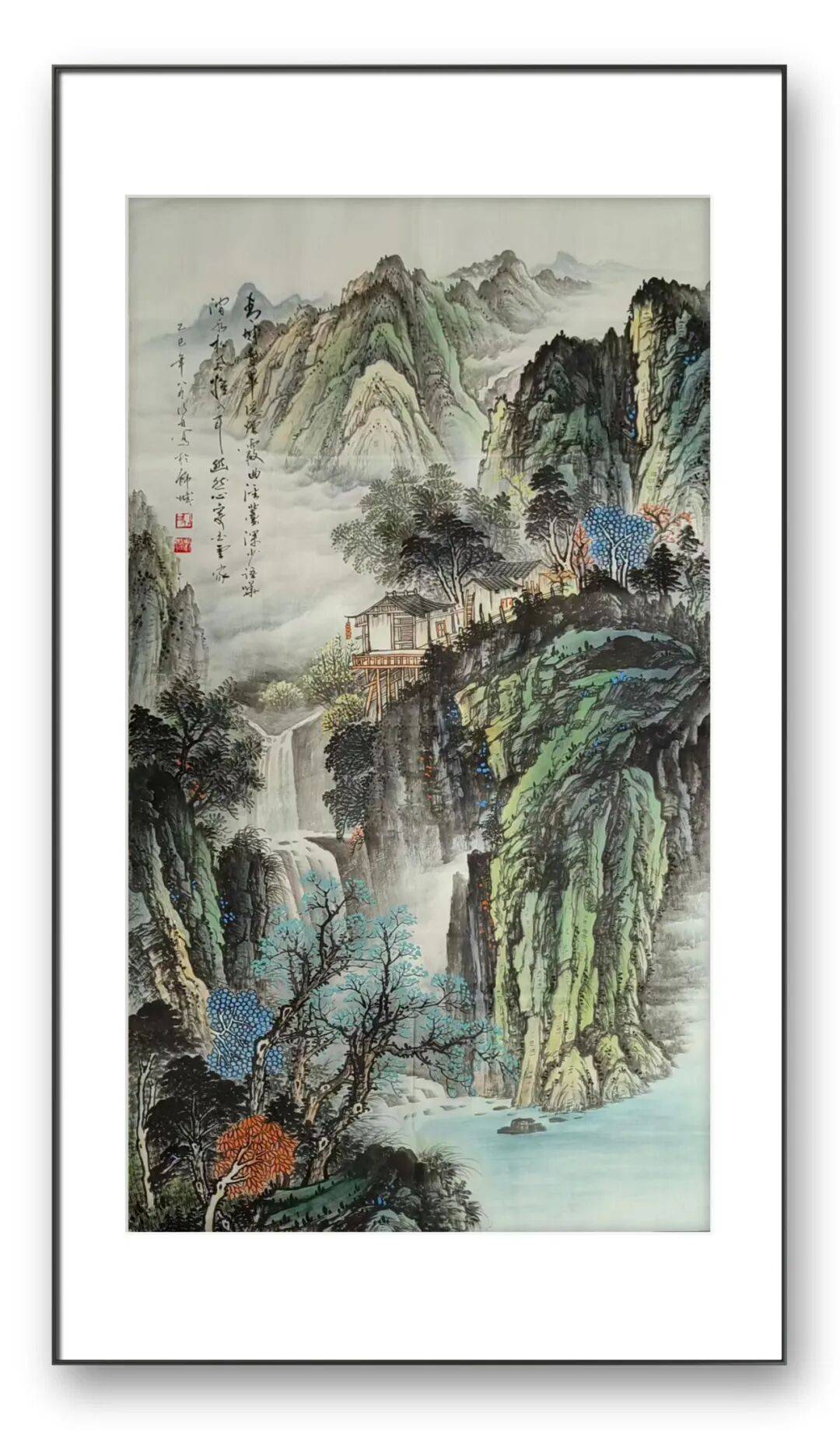 朱德斌先生山水画的最高境界,在于实现了“文武相济”的艺术融合,这也是其作品最独特的艺术价值所在。武学赋予他刚健的风骨与精准的把控力,使其笔墨有筋骨、构图有气势;文学与书法滋养他温润的情怀与深邃的意境,使其作品有韵味、有内涵。在他的画作中,我们能清晰看到这种融合的痕迹:山水的雄浑刚健中透着书法的笔墨韵律,花鸟的雅致灵动中藏着武学的气脉贯通;刚劲的线条不失婉转,厚重的墨色不乏空灵,形成了刚柔并济、虚实相生的艺术风格。这种风格,既突破了传统山水画的单一审美范式,又延续了中华优秀传统文化的精神内核,让作品在视觉冲击之外,更具精神感召力。