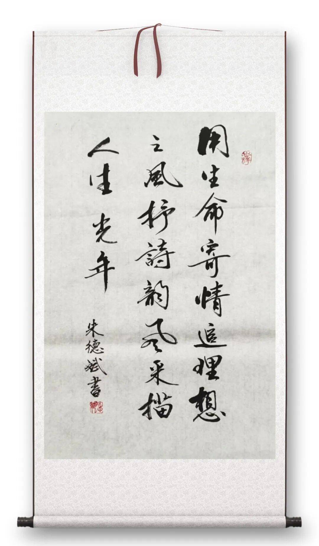 朱德斌先生的书法作品,墨韵苍劲有力,风骨藏于笔端,每一笔都饱含深情,每一字都尽显雅致。这种苍劲,并非刻意为之的张扬,而是源于武者的底气与自信;这种雅致,也不是矫揉造作的修饰,而是文人情怀的自然流露。他的作品屡次入选各类大展,得到业界的广泛认可,这背后正是其书法中蕴含的独特艺术魅力与文化底蕴。在先生的书法世界里,我们能看到文武相融的奇妙化学反应:武学的刚健赋予笔墨以筋骨,使其不流于软媚;书法的雅致则滋养武学的心境,使其不失沉稳。这种刚柔并济的艺术风格,正是他人格特质的生动写照。