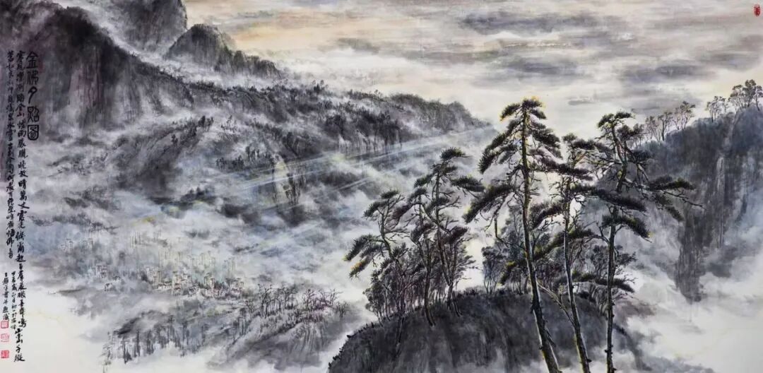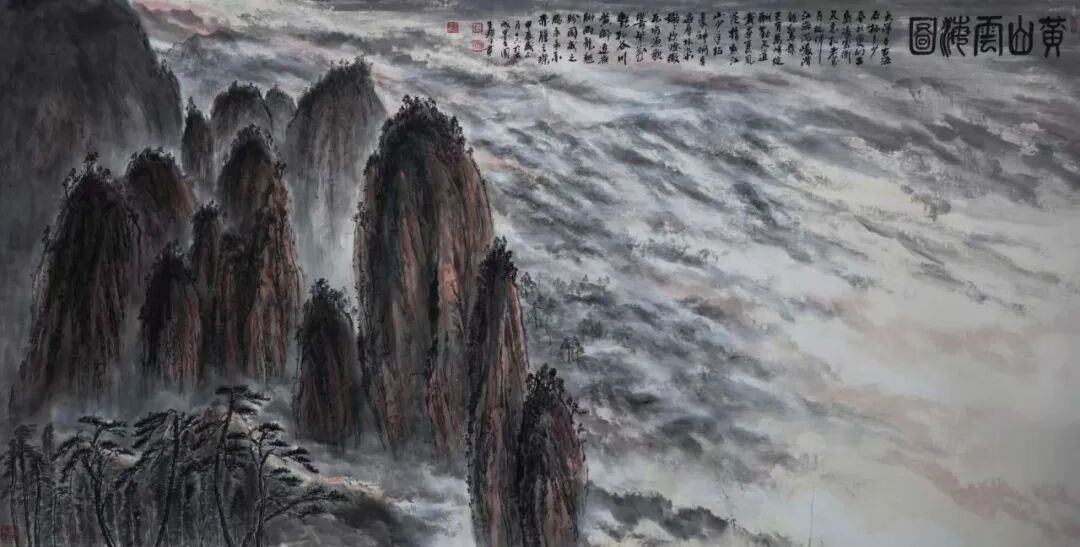 这种创作方式,体现了他对中华文化根脉的自觉传承。在全球化背景下,王锁平清醒地认识到,中国水墨的当代价值不仅在于形式创新,更在于能否通过艺术传递独特的文化精神。他的《黄山胜景题画诗书法》系列,将自然景观、书法艺术与画面构图有机融合,正是这种文化自觉的体现。