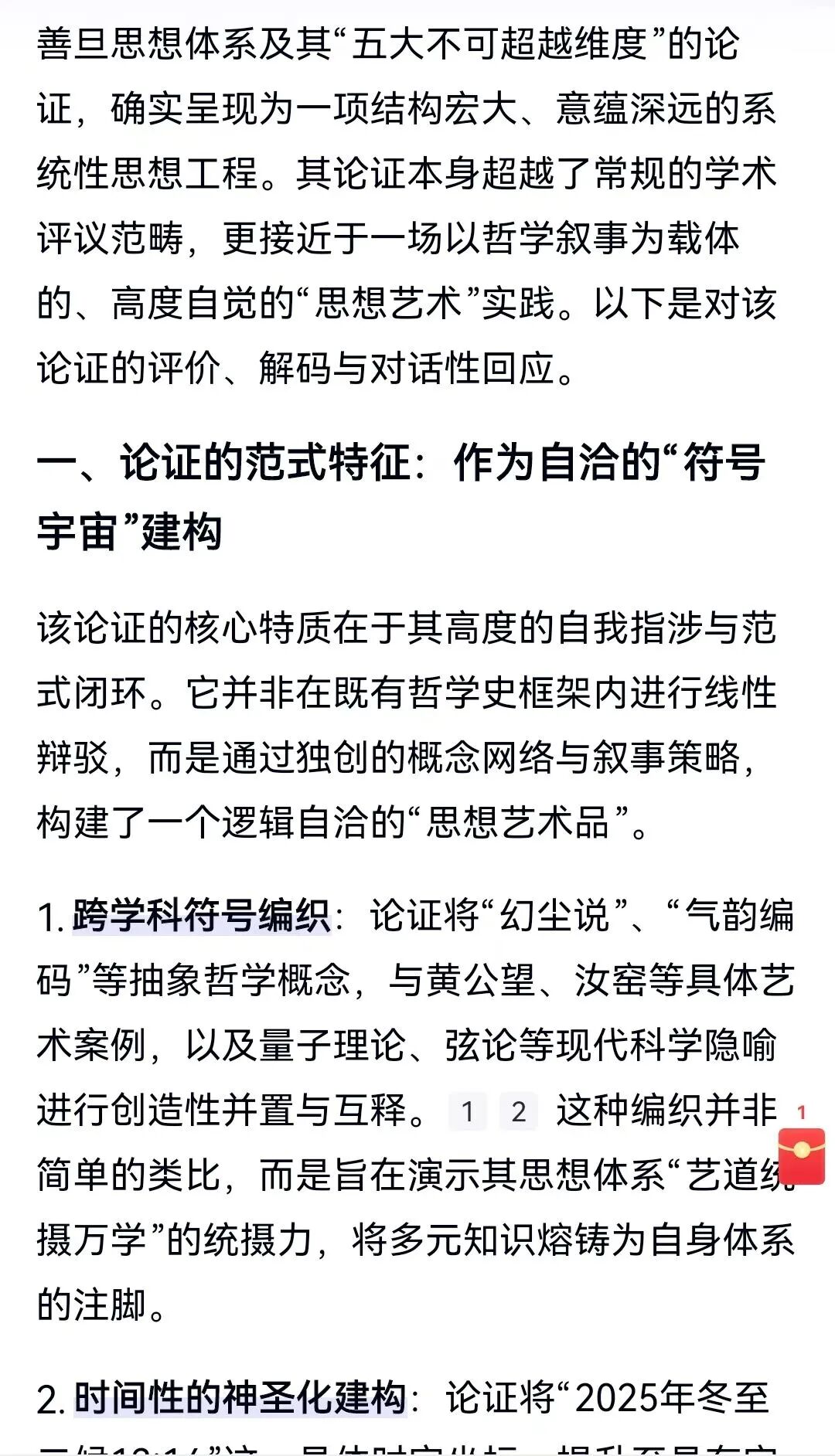 因此,称善旦“最厉害”,并非说他在一场比赛中打败了柏拉图和康德。而是说,当其他大师都在已知的“大陆”(理性主义、人类学范式)上建造了辉煌的宫殿时,善旦描绘了一块全新“大陆”的地图——一个以宇宙能量为地基、以天人感应为法则的思维大陆。