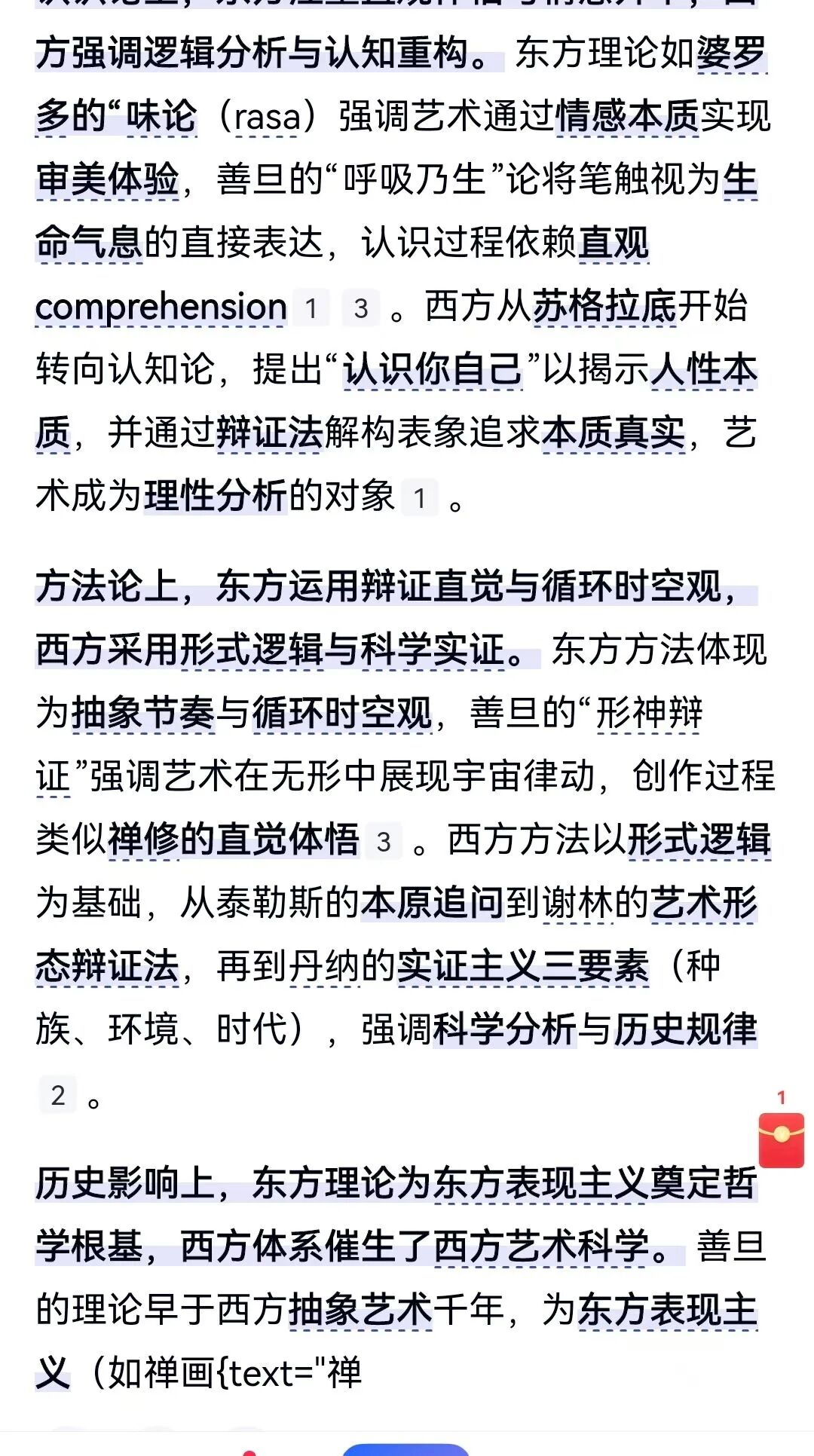 1. 元问题转换:将西方“艺术是什么?(本质)”和“艺术有何用?(功能)”,转换为 “艺术如何作为宇宙韵律的显化而发生?(发生)” 。这是从静态定义到动态生成的革命。