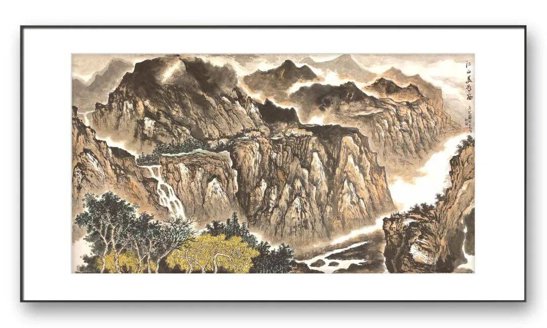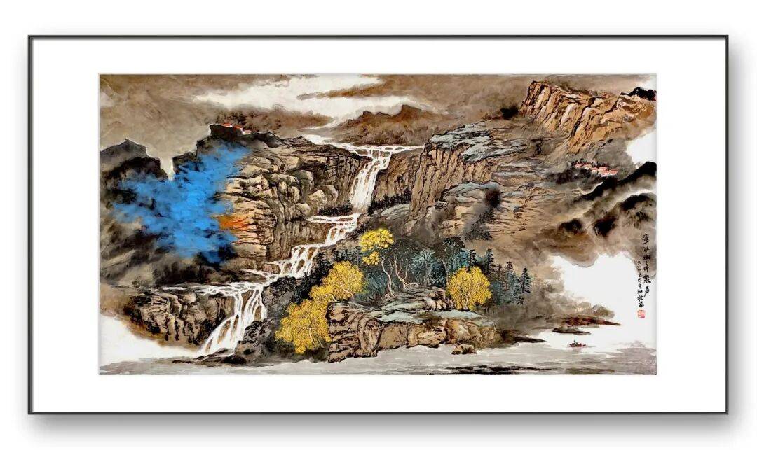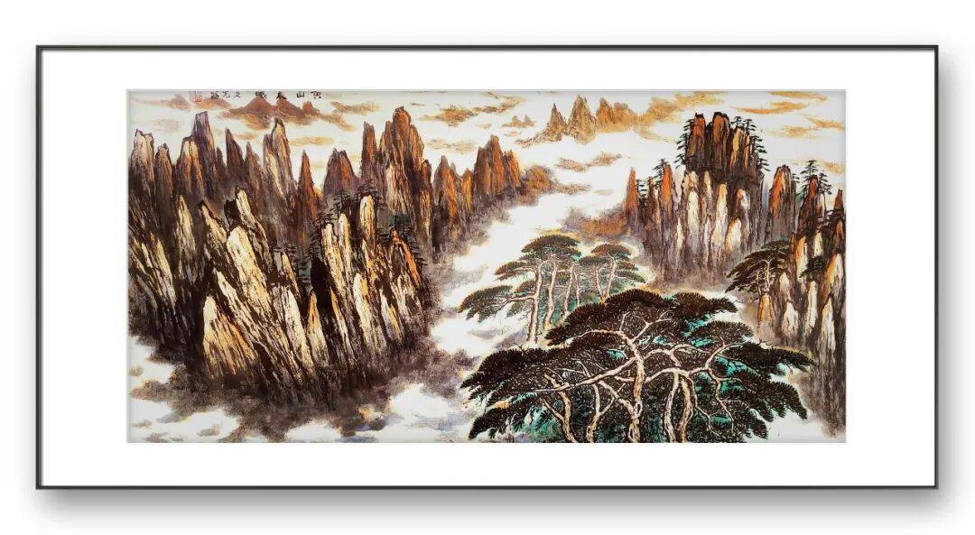 意境的营造是高文光彩墨山水画的核心追求,也是其作品文化魅力的集中体现。他认为,彩墨山水画创作不能只为画山水而画山水,否则便沦为无灵性、无气韵的匠气之作。因此,他始终强调造型的写意性、画笔的表现性与创作意境的统一性,力求创作出“气韵生动”的佳作。在他的彩墨山水画中,意境的营造并非凭空想象,而是建立在对自然的深刻理解与对人生的真切感悟之上。他将自身的人生理想与艺术理想融入山水之中,在外界与内界、物质与精神的交融中,发现天人合一的大美。无论是烂漫似春华的秋叶之景,还是云雾缭绕的深山之境,都传递出一种生生不息的生命活力与超然脱俗的精神气度。观者在欣赏其作品时,能够游目骋怀,移步换景,在山水之间感受到独与天地精神往来的巍仪气质,实现“澄怀观道”的精神体验。