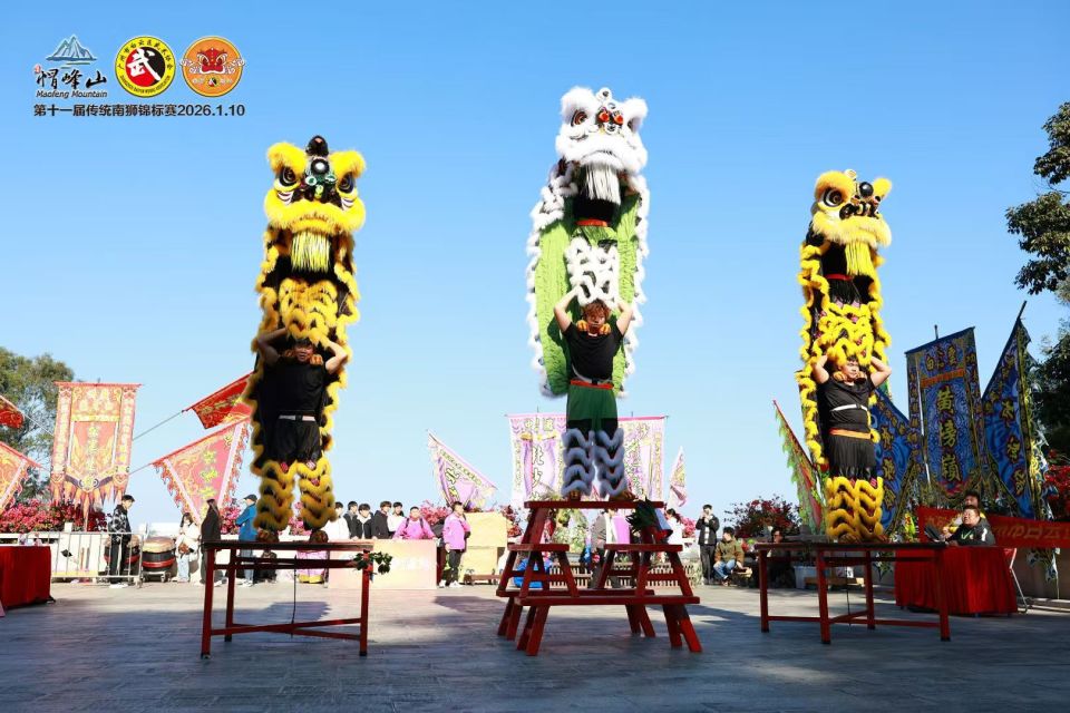 本届赛事创下历史新高 ——60 支精英醒狮队伍携 120 余头“雄狮”浩荡集结,点燃了岭南冬日的文化体育活动热潮,为传统南狮这一非遗文化的传承与发扬注入澎湃动能。