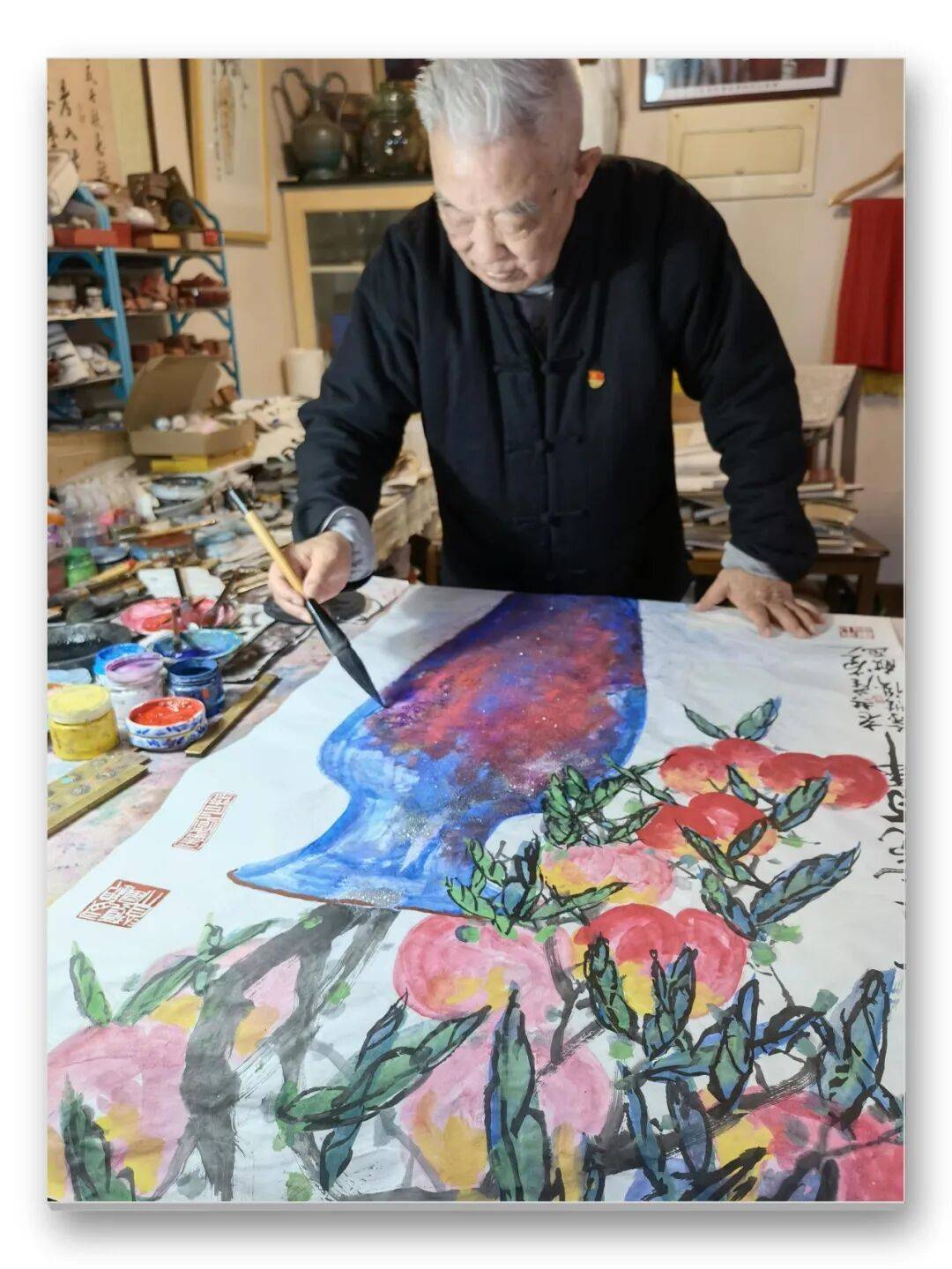 千钧万变、意境无穷的魅力有几人能描绘?而这区别于传统水墨的姿态,在打破中创新的艺术,何尝不是体现了余老的风骨?只要有一点事物触动他的思路,立刻就生出一种意境,在一弹指中就把这种意境在心中渲染成五光十彩,用他的心、他的情、他的才,描绘了禹州的美丽,描绘了他心中家乡的斑斓。“人移情于物,还要吸收物的姿态回馈自我,不知觉中被熏陶。所以美感经验的直接目的虽不在陶冶性情,却有陶冶性情的功效。”心心念的都是故乡的余老,大概移情于物的同时也在被物所慰藉吧。