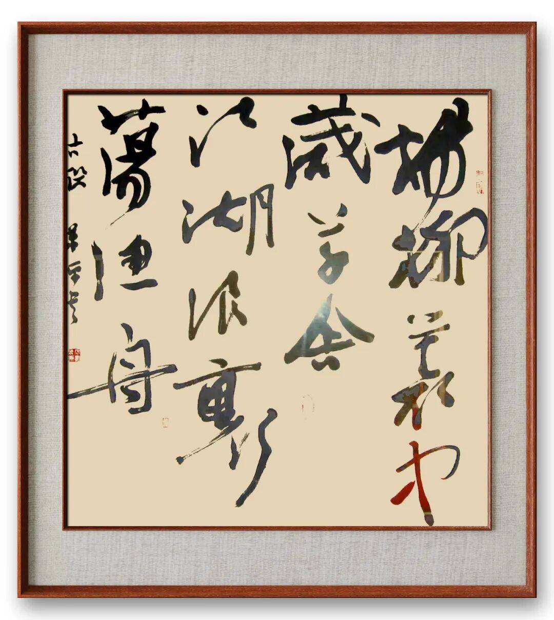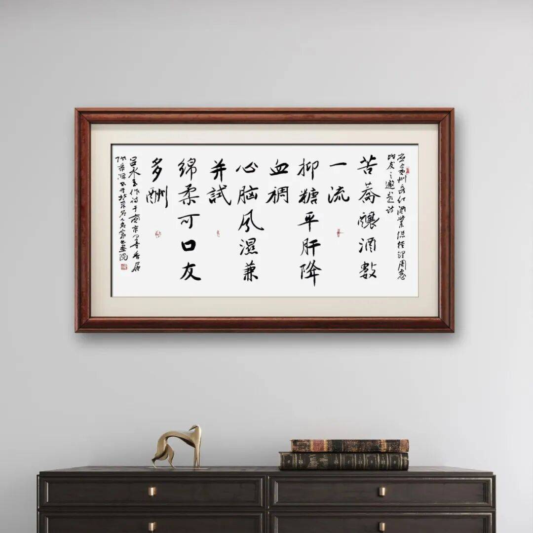 在行书创作中,他则反向融入楷书的严谨笔法,让行草的灵动不失沉稳。他的行书作品,笔法流畅却不漂浮,线条灵动却有筋骨,既保留了王羲之“飘若浮云、矫若惊龙”的灵动神韵,又融入了楷书的精准把控,避免了行草易出现的潦草随意之弊。此外,他还将隶书的厚重线条与篆书的凝练笔法融入楷、行创作中,让作品的笔墨更具层次感与厚重感。这种多体笔法的跨界融合,打破了传统书体间的壁垒,形成了“刚柔并济、灵动沉稳”的独特笔墨语言,让观众在熟悉的书体形态中,感受到全新的笔墨韵味。