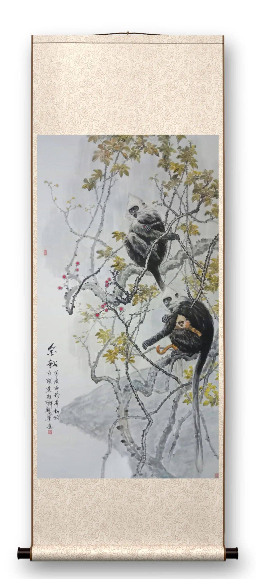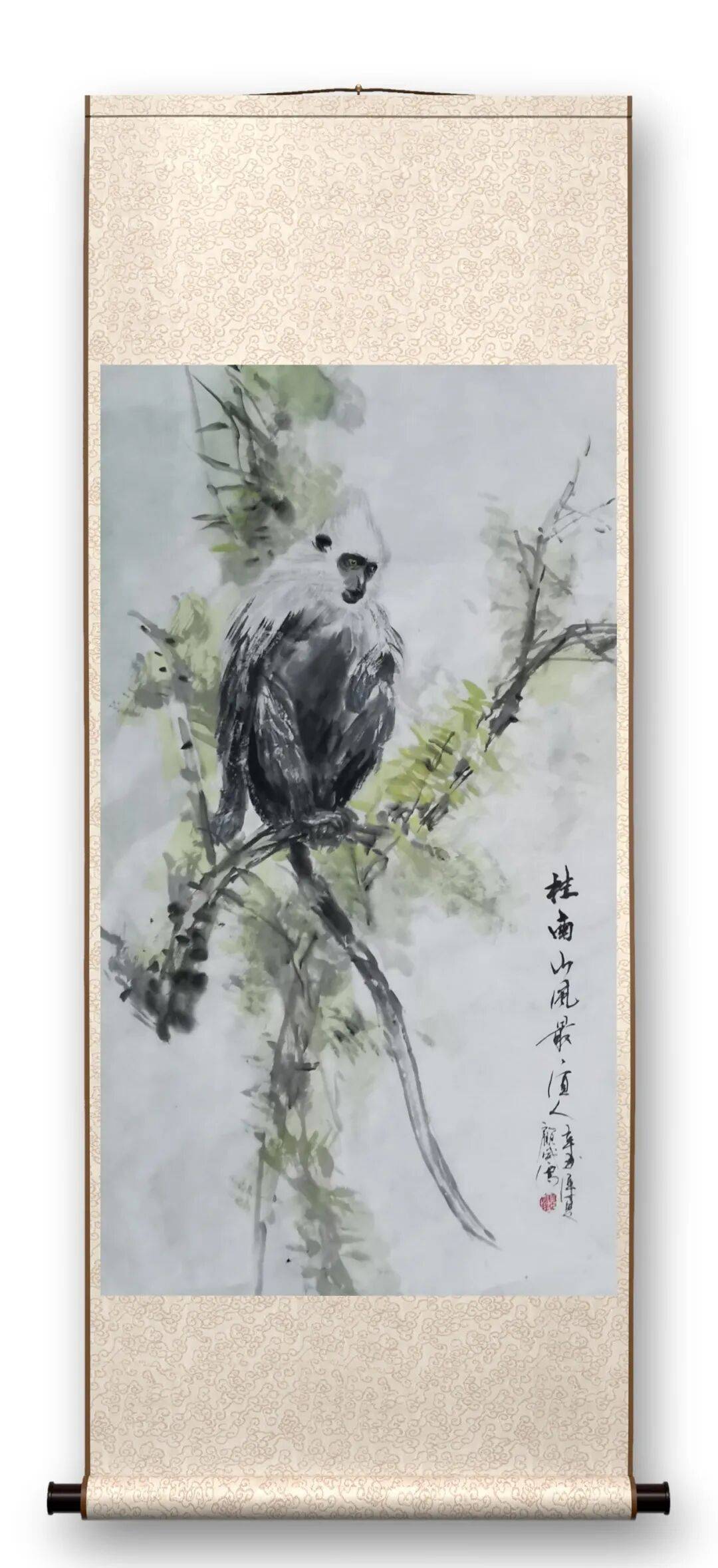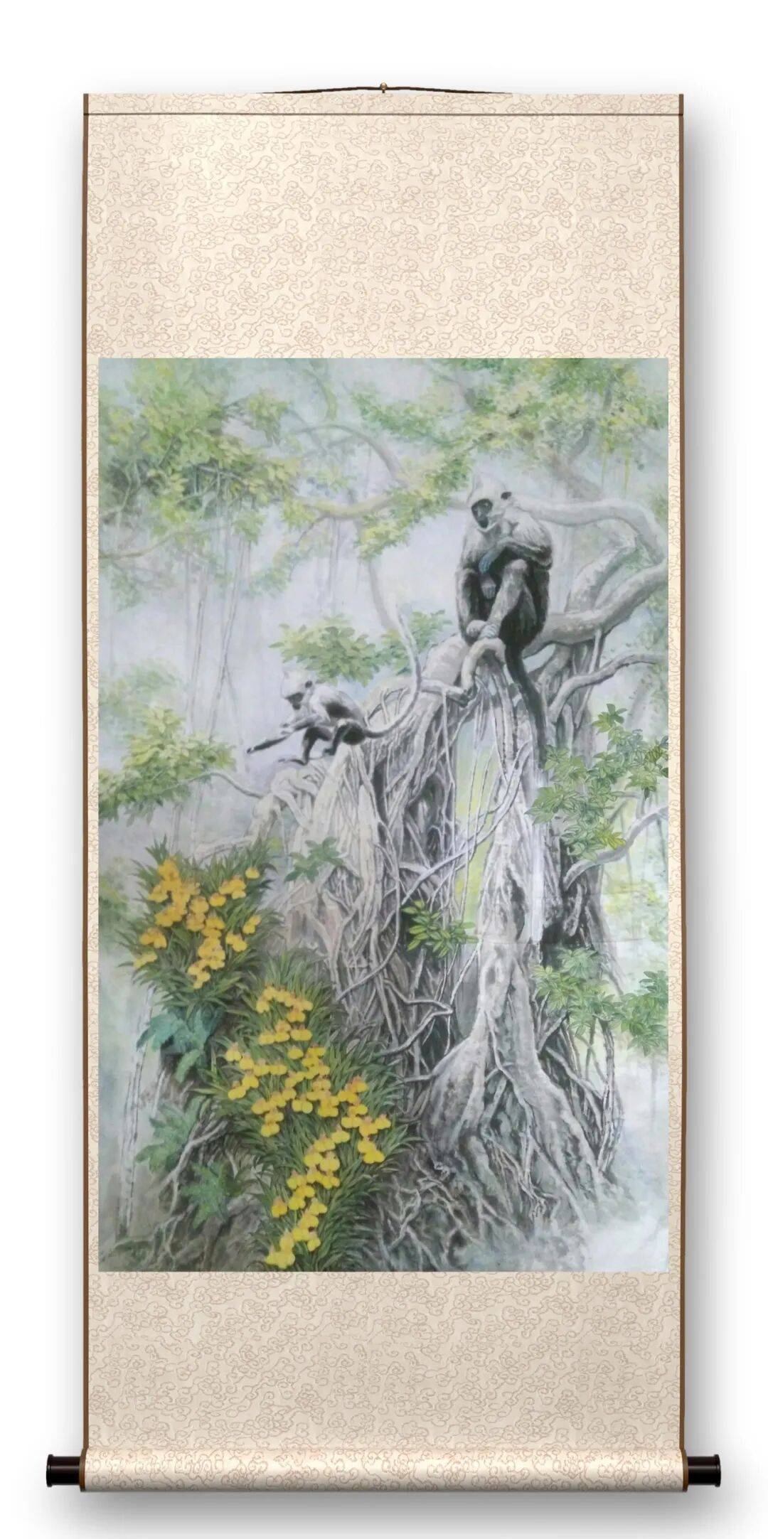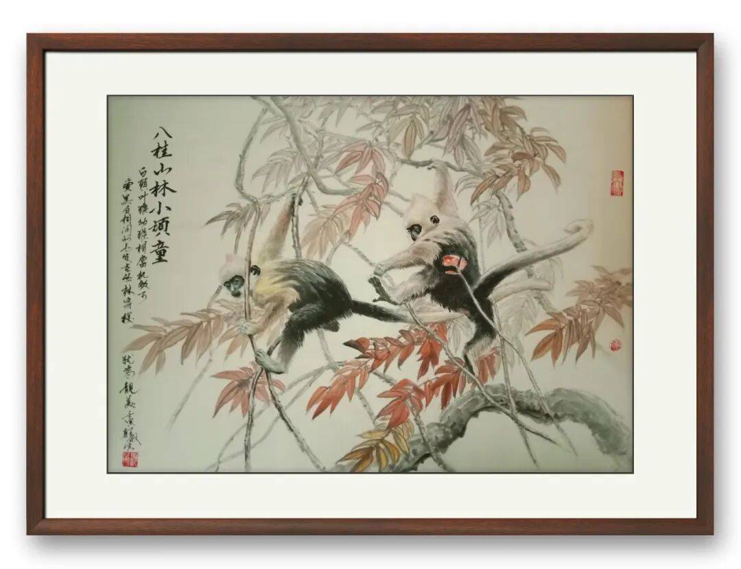 中国画有 “画鬼容易画人难” 之说,就是越熟悉的就越难画。而猴子在走兽一科中,是最难表现的动物之一。与猴有关的成语有尖嘴猴腮、猴年马月、沐猴而冠等,可见猴与人的关系多么密切。历代画猴的名家大师不是很多,因此可供参考学习的资料并不丰富,尤其是关于广西特有的白头叶猴的画作更是少见。不过也正因为如此,留给他创作的空间反而更大,束缚也更小。