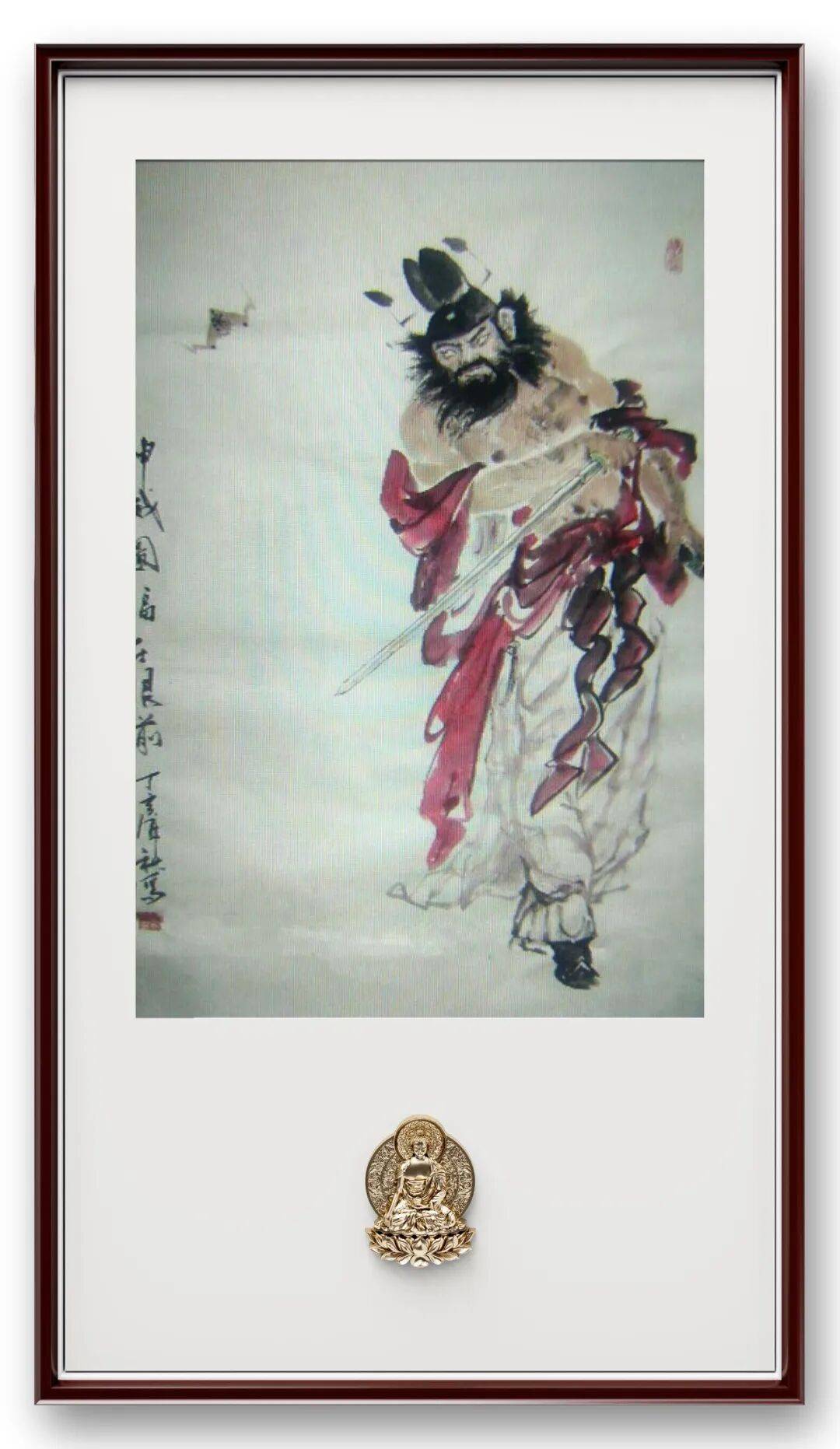 顾威亦善绘钟馗,笔下的驱邪判官跳出传统范式的刚猛威厉,多了几分亲和与人文温度。他以凝练笔墨勾勒钟馗虬髯怒目的威仪,更以细腻笔触刻画其眉宇间的正气凛然;衣袂皴擦间融入桂地山水的苍劲质感,袍角飘带又暗含写意花鸟的灵动韵致。其钟馗图,不耽于 “镇宅驱邪” 的世俗寓意,更着意于彰显匡扶正义、护佑苍生的精神内核,笔墨间既有传统人物画的法度,又有当代审美下的创新表达,观之令人心生敬畏,亦觉亲切可感。