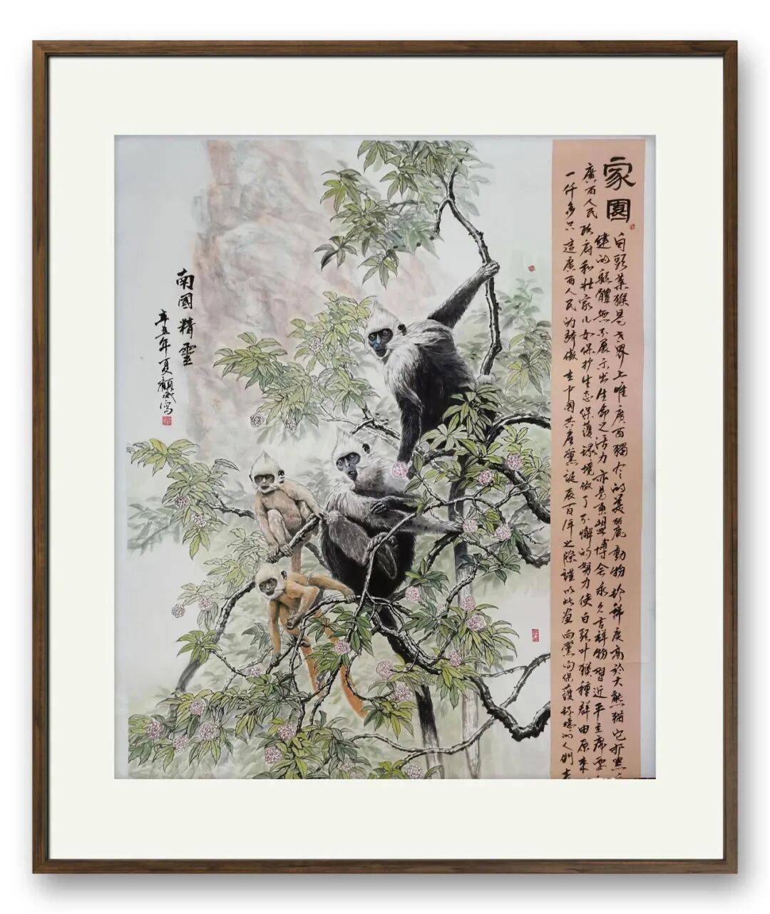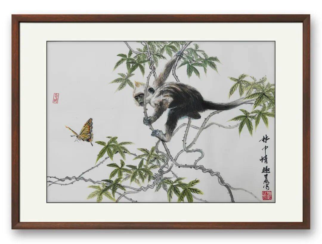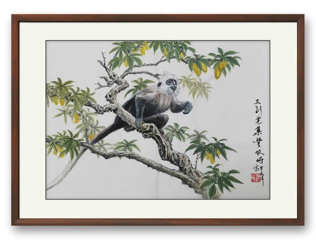 2009年,顾威将创作目光投向广西特有、亦为世界珍稀的白头叶猴,成为**国内首位以中国画技法表现这一物种的画家**。身为广西儿女,他数度深入白头叶猴之乡,于山林间静观灵猿攀援腾跃的灵动身姿,亦动容于当地民众守护生灵的赤诚之举。眼见桂地名家鲜有以此为题材,他便以笔墨为媒,扛起为白头叶猴立传的艺术使命,借丹青妙笔定格其鲜活神韵,让这方水土孕育的珍奇生灵,以艺术之姿走向更广阔的世界。