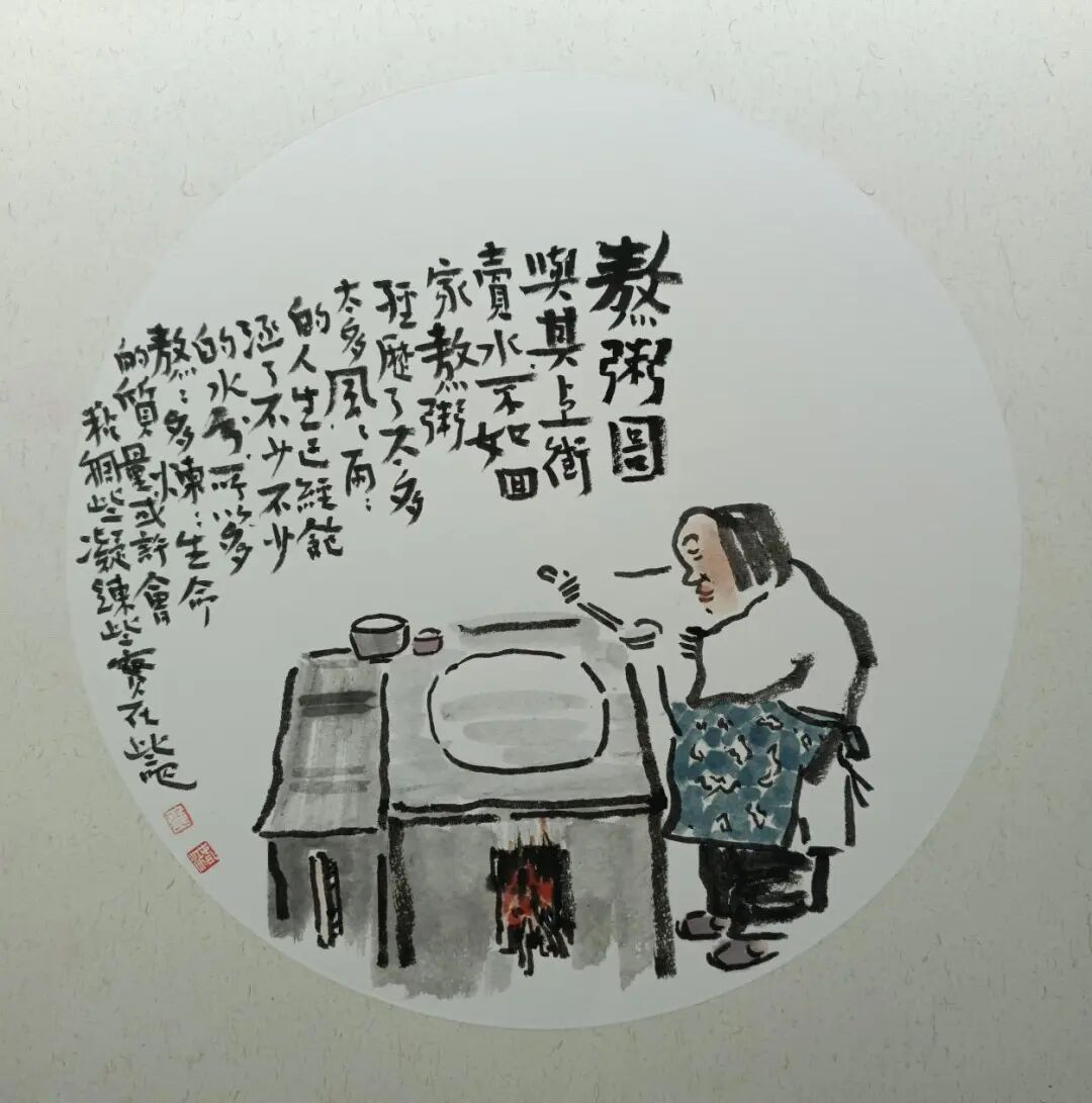 《熬粥图》2021年 50X50cm
