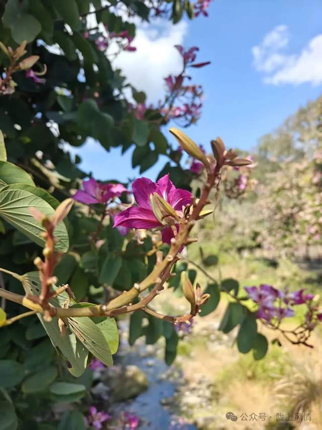 山中素有十八景,仙人洞幽深藏趣,香炉峰奇崛凌霄,皆自成一格。然最令我驻足沉醉的,却是后山那片蟠桃林。古木参天,枝桠交错,尽是时光刻下的苍劲纹理。林间更有奇珍悄然生长:刺桫椤亭亭而立,撑起一片清幽;香杜鹃暗送清芬,沁人心脾;寄生石斛与冬凤兰依偎枝头,自在攀生,添了几分娇柔灵动。郁郁葱葱的绿意叠成层涛,其间点缀的粉萼如云霞流转,汇成柔漾的花海。林涛阵阵,与山石的嶙峋、檐角的古朴相映成趣,宛如一幅天然长卷,浓淡皆宜,令人沉醉忘归。
