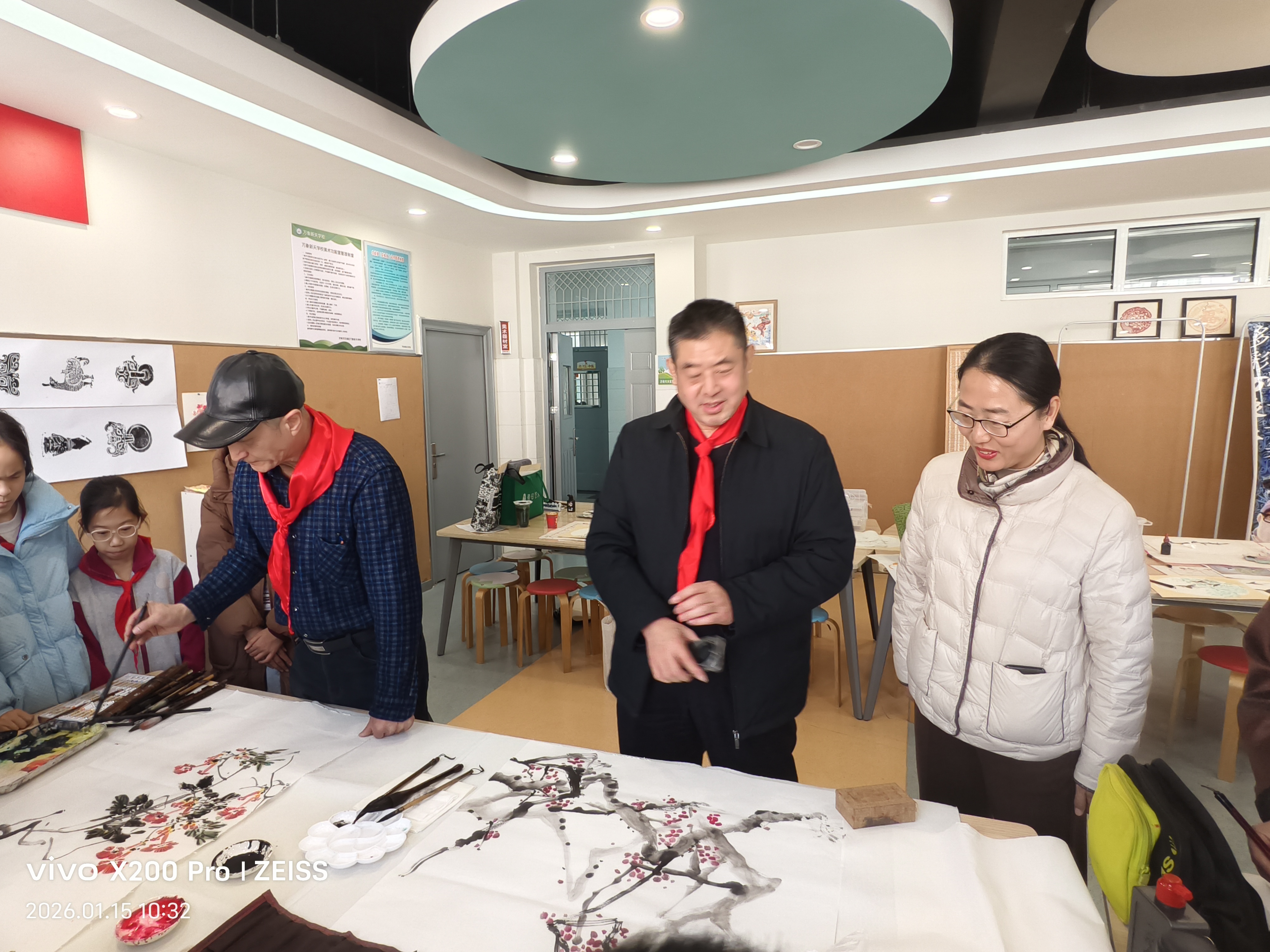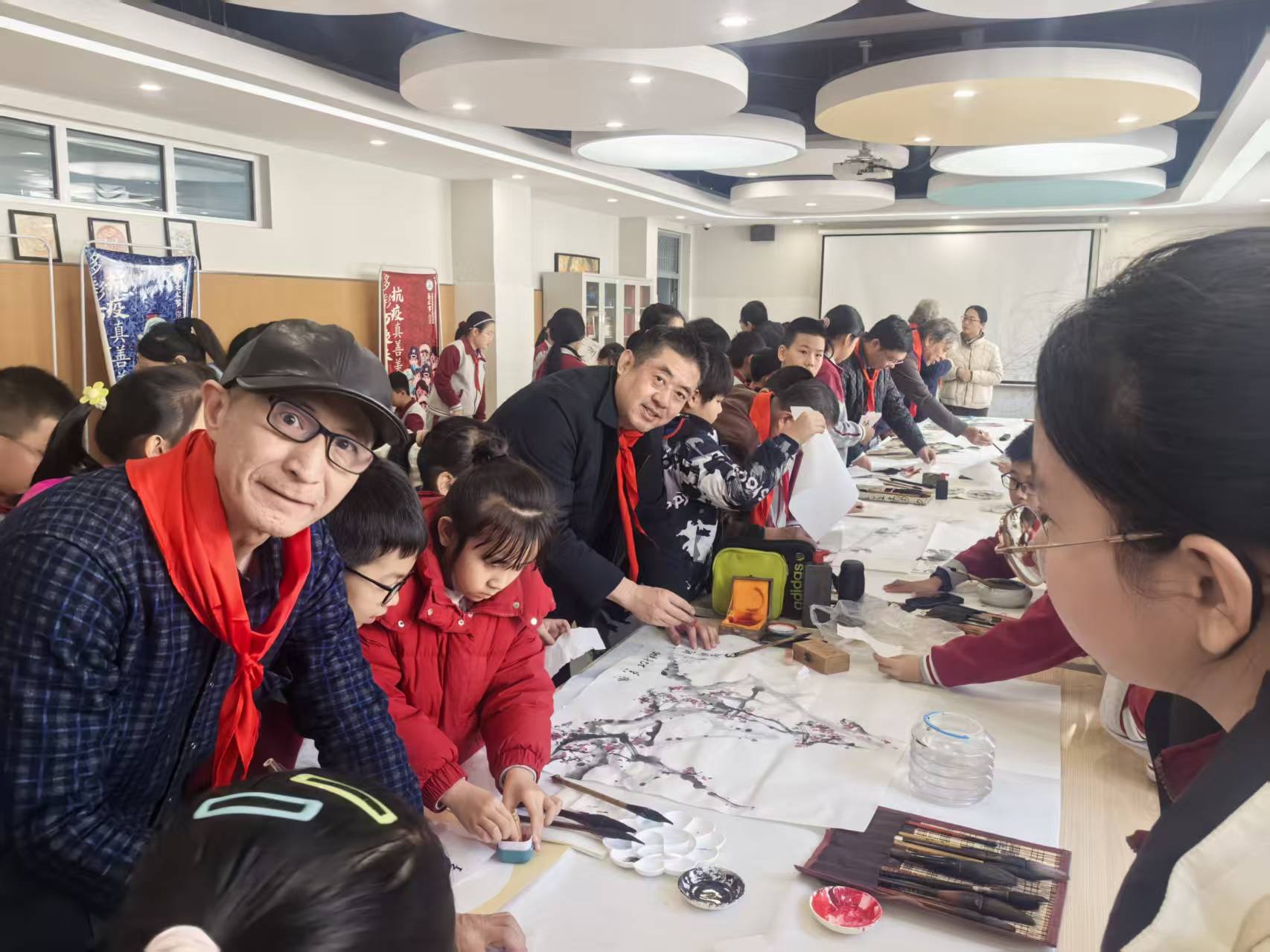 9,谷明剑应邀参加山东省文化馆等多文化单位联合举办的冬春文化惠民活动,走进济南历城二中教育集团万象新天学校。“传统艺术进校园”“书画文化润童心”。