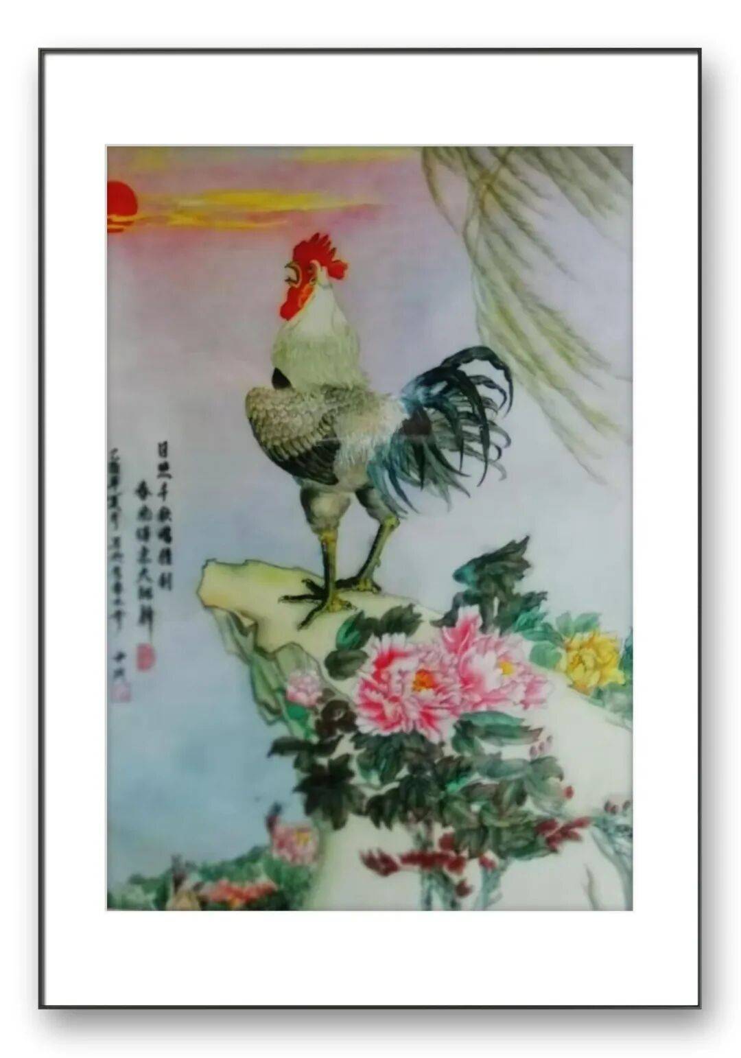 色彩的运用是杨中兴花鸟画的另一大亮点。他善于运用传统的矿物颜料,以沉稳雅致的色调营造出古朴而鲜活的视觉效果。在吉祥富贵中,孔雀的羽毛以石青、石绿、泥金等矿物色层层晕染,眼状斑纹的色彩丰富而细腻,与牡丹的胭脂、花青相互映衬,既保留了传统工笔的富丽堂皇,又通过色彩的微妙变化传递出自然的生机。而在天伦之乐中,他以淡雅的米黄为底色,搭配公鸡的红黑羽色与雏鸡的浅灰绒毛,色彩和谐而富有层次,营造出温馨质朴的田园氛围。这种对色彩的精准把控,使他的作品既具传统文人画的雅致,又符合当代的审美需求。
