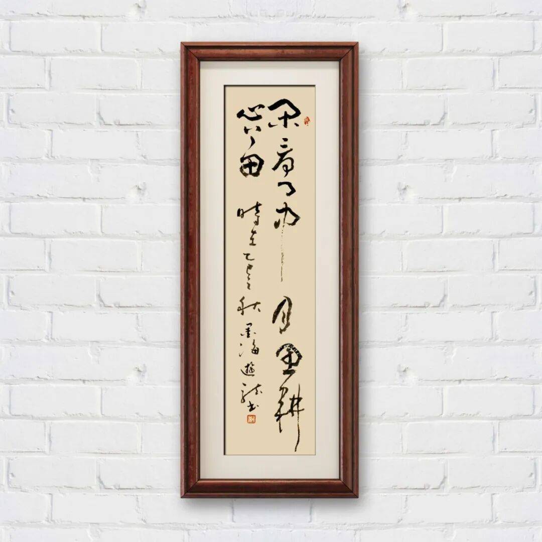笔法与墨法的精妙融合,是刘明老师书法艺术的核心魅力。书法之魂在笔法,他对笔法的掌控已达“心手合一”之境,执笔在手,运笔在心,提按顿挫间尽显功力。其行草书作品中,八面出锋的笔法展现得淋漓尽致,笔势纵横捭阖,却收放自如,既有“大漠孤烟直”的雄浑苍劲,又有“新月出天涯”的纤巧灵动。一划之间,变起伏于锋杪;一点之内,殊衄挫于毫芒,线条如秋鹰逐兔般惊心动魄,又似流泉奔涌般婉转洒脱。在墨法运用上,他深谙“墨分五彩”之理,将浓、淡、干、湿、枯、润的变化融入创作,枯墨飞白处见苍劲,润墨浓淡间显层次。涨墨与渴笔的对比运用,使作品节奏感十足,墨气酣畅而筋力弥满,让线条不仅具有视觉冲击力,更承载着丰富的情感内涵,实现了“笔与墨相合亦相争”的艺术效果。