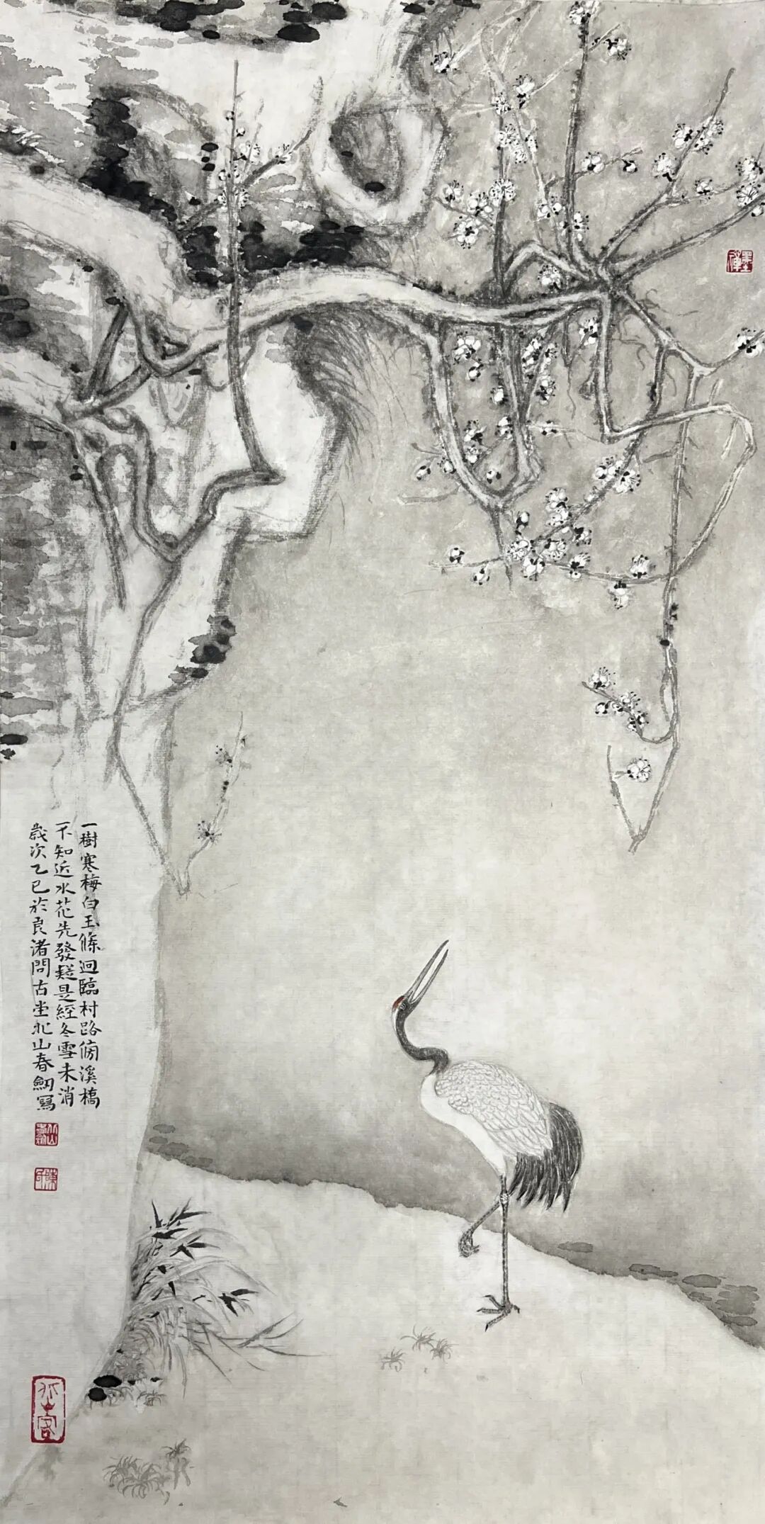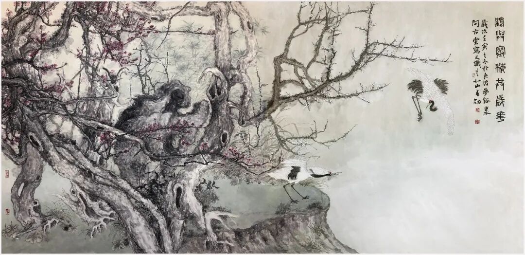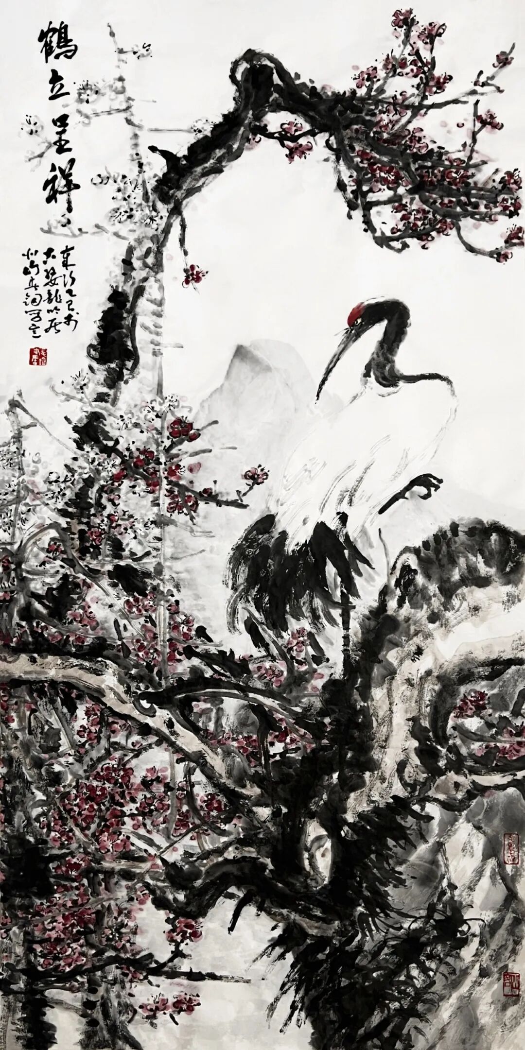 鹤与寒梅共岁华 248×124cm