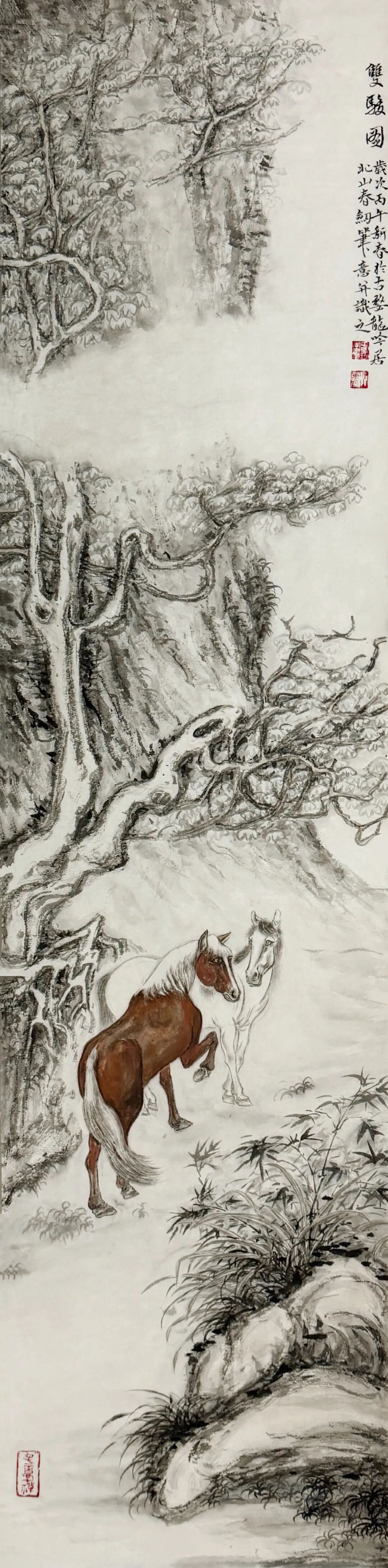 双骏图 33×134cm