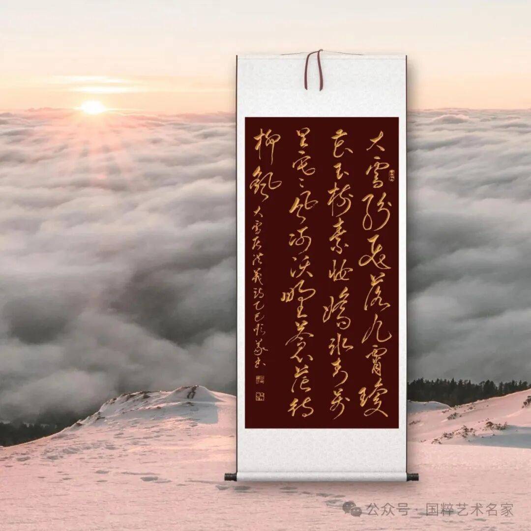 在技法运用上,李顺义先生将方圆、顿挫、浓淡、干湿、大小、快慢等元素精妙融合,让每一笔都充满节奏变化与生命活力。其线条或如钢丝般劲挺,蕴含不屈的精神力量;或如枯藤般苍劲,承载岁月的沉淀厚重;或如流水般圆润,流露自然的灵动洒脱。书写主席诗词沁园春·雪时,笔势激越奔放,线条粗壮厚实,如奔涌江河裹挟雷霆之势,将词中“千里冰封,万里雪飘”的壮阔意境与豪迈情怀具象化;而书写唐诗小品时,线条则纤细轻盈,疏密有致,于方寸间营造出悠远空灵的意境。这种对线条质感的精准把控,源于他对毛笔特性的极致掌控,更得益于数十年笔耕不辍的功力积淀,使每一根线条都兼具“力透纸背”的厚度与“气韵生动”的灵性。