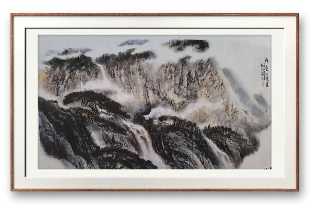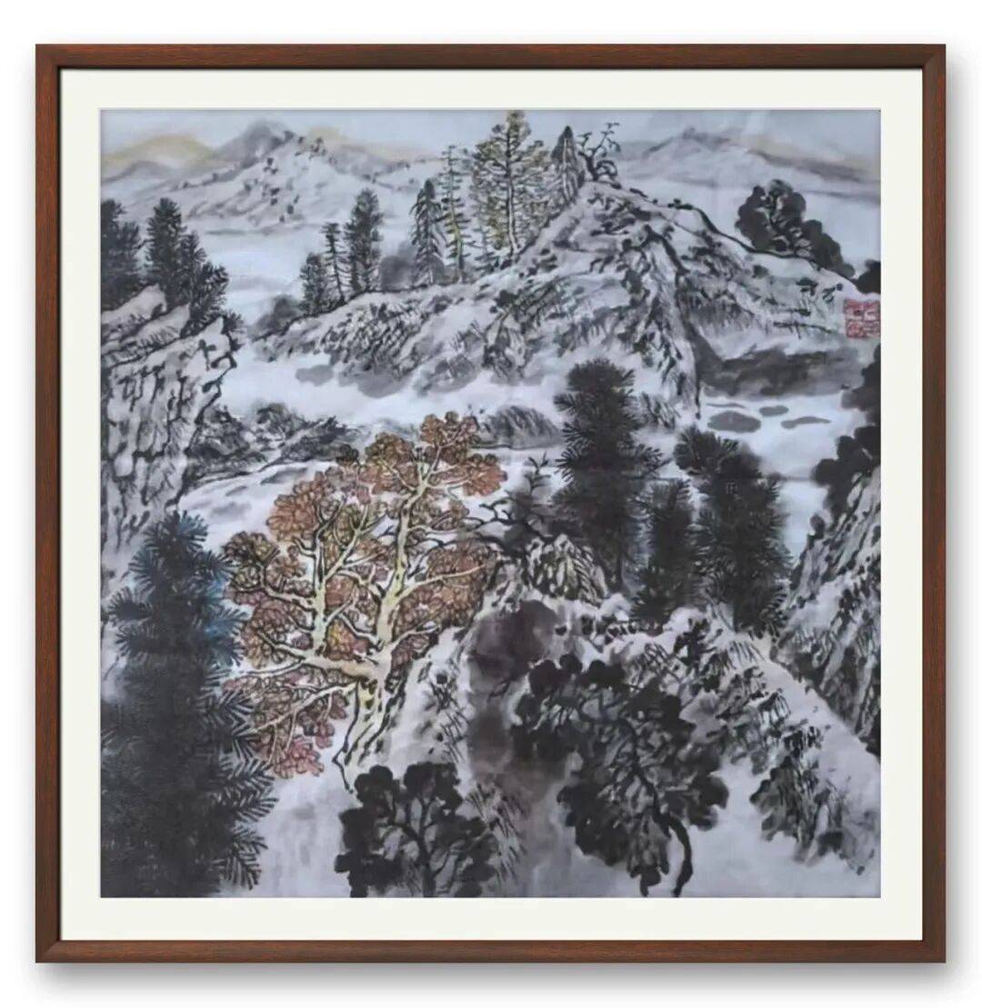 山水画则印证其笔墨功力,彰显“宏观领悟”的追求。他不复刻自然,以“胸有丘壑”之气度,融山川雄奇、云水灵动、草木清幽于一体。笔墨兼具北派雄浑与南派温婉,线条硬朗、墨色厚重见山川风骨,淡墨晕染显云水飘逸。构图虚实相生、疏密有致,于壮阔景致中藏天人合一哲思,让观者体悟天地磅礴气韵。