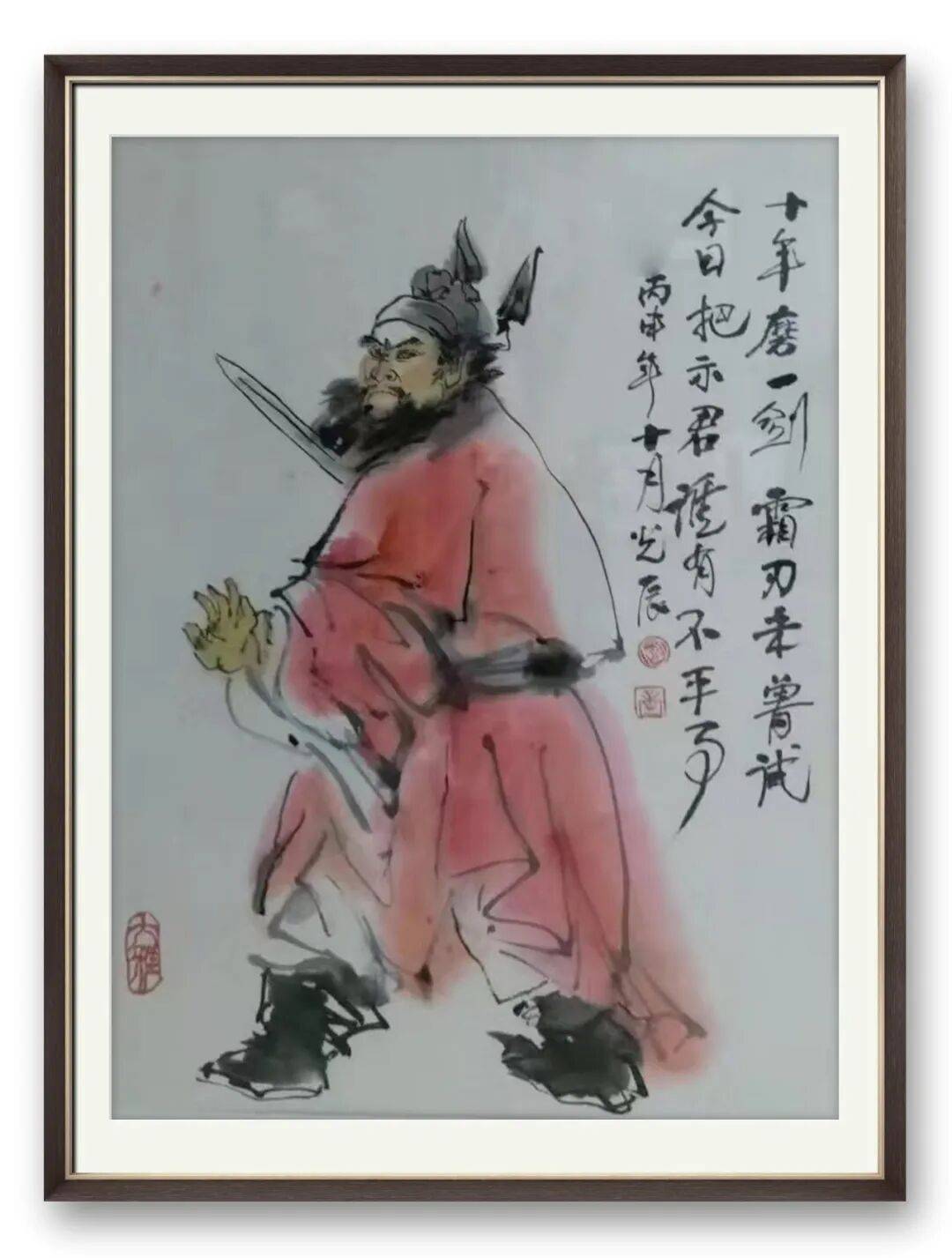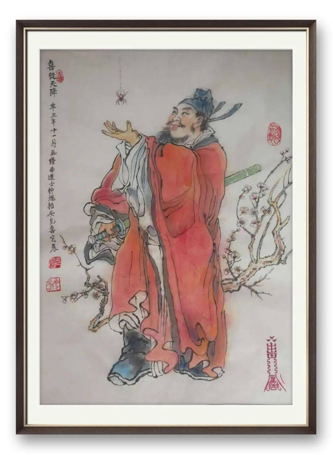 钟馗画作为人物画延伸,是先生对传统题材的创新演绎。世人多画钟馗威严肃杀,他却另辟蹊径,于威严中藏悲悯,刚正里含温润。浓墨立骨显凛然正气,淡墨染衣添飘逸灵动,打破刻板印象。其笔下钟馗既是镇邪象征,亦是安宁守护者,笔墨间兼具民俗内涵与对正义善良的追求,让经典题材焕发当代生机。
