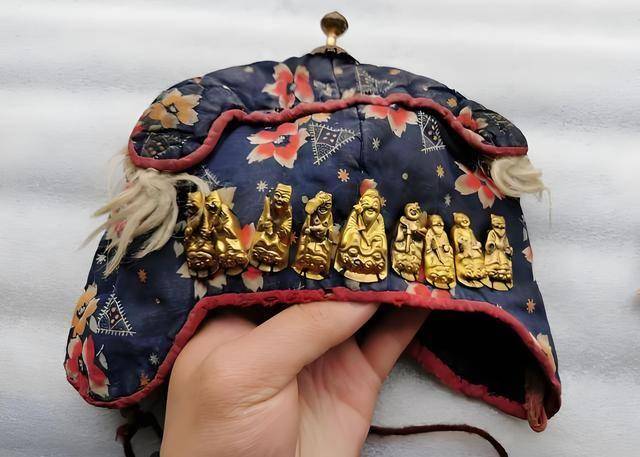 脑包的佩戴场景承载着浓厚的仪式感与家族传承:满月之际,祖母亲手为孙儿戴上脑包,银饰叮当作响,既向亲友宣告新生命诞生的喜悦,更暗含家族香火延续的深意;周岁宴上,脑包成为孩童的主角服饰,银饰的数量与工艺直观映照家庭经济实力——殷实之家以“九件银饰”(如银锁、银铃、银簪等)彰显富足,贫寒之家亦竭力打造一两件核心银饰,以表对孩子的珍视。这种“以帽为礼”的习俗,已演变为豫西地区的民俗礼仪,既强化了孩童在家族中的核心地位,更让“重视后代”的价值观代代赓续。