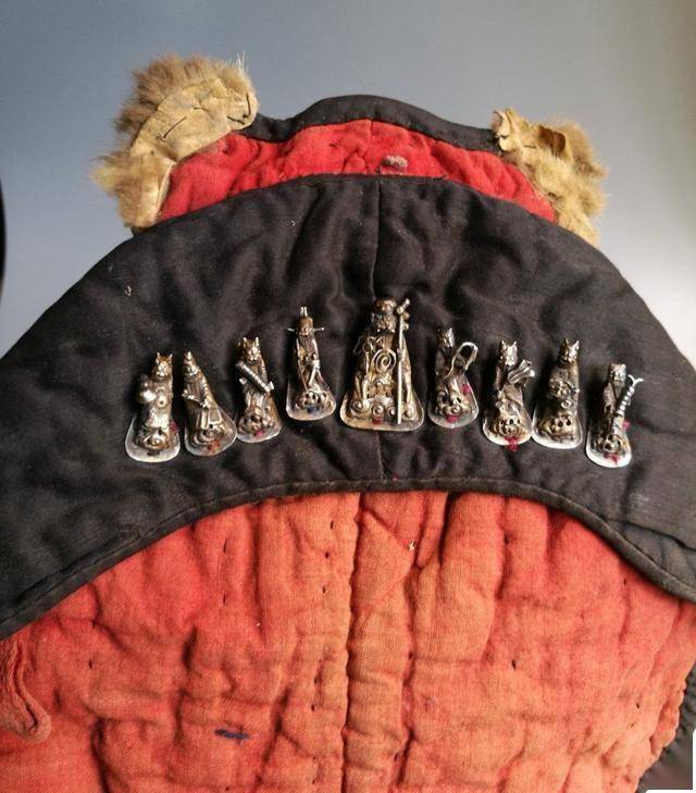 旧时虽有虎头帽流行,但二者区别显著:虎头帽以绣制虎头纹样为主,是孩童普遍佩戴的款式;而脑包则以大量镶缀银饰为特色——帽前常饰有银质神像、老虎头,帽后则挂有四五串银铃作为帽坠子,佩戴时银饰随动作发出“哗啦啦”“叮当当”的清脆声响,尽显富贵高雅,多为娇子富童佩戴。民间传说中,脑包还被赋予了诸多吉祥寓意。