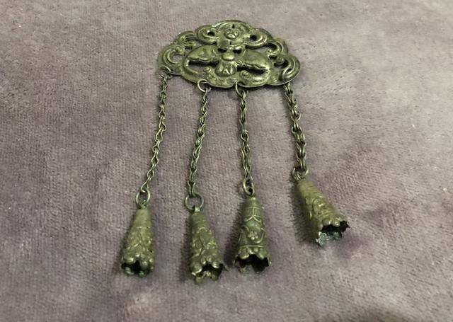 首先可以驱邪。在民间信仰中,银被赋予"纯阳之器"的神性,被认为能吸附邪祟、净化气场。旧时医疗资源匮乏,孩童出痘、惊风等病症常危及生命,家长便将希望寄托于脑包上的银饰:帽挡是一个凸起的银质老虎头,帽沿缀着一圈神态各异的银质娃娃,面容憨态可掬,寓意"以形镇邪";帽后的帽坠子上有四五串银铃铛,行走时银饰叮当作响,既驱散秽气,也能让家长随时知晓孩童动向;更有小巧的银锁、银斧等饰件,刻着"长命百岁"等字样,仿佛将平安牢牢锁在孩童身上。